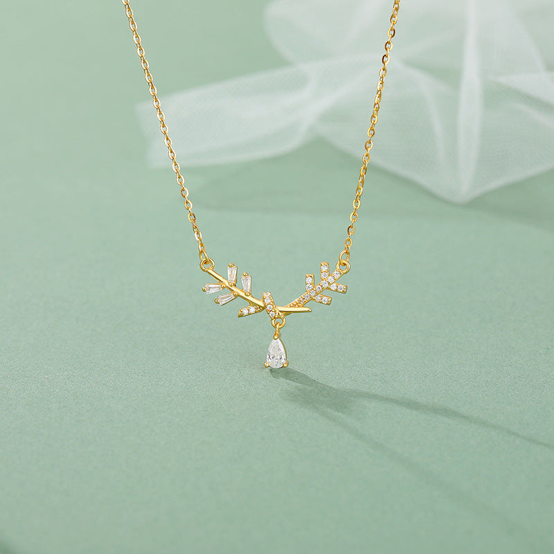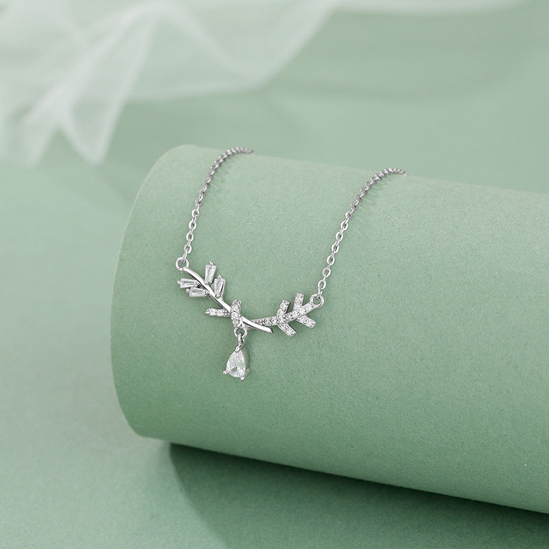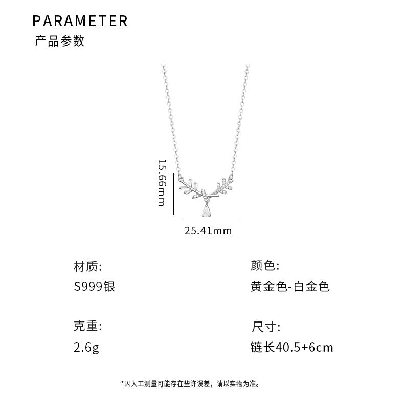 E廠【YC3280N】S999足銀樹葉水滴鑽項鍊氣質小眾清新甜美文藝少女高級感鎖骨 24.07-1