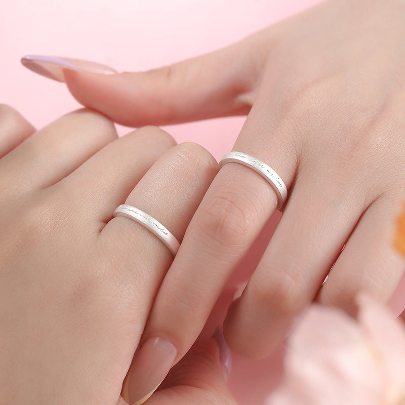 E廠【YC3305R】S999足銀情書情侶對戒氣質極簡獨特文藝一對清新戒指手飾 25.07-1