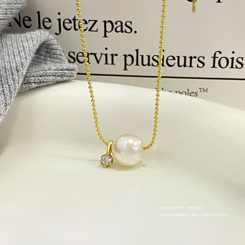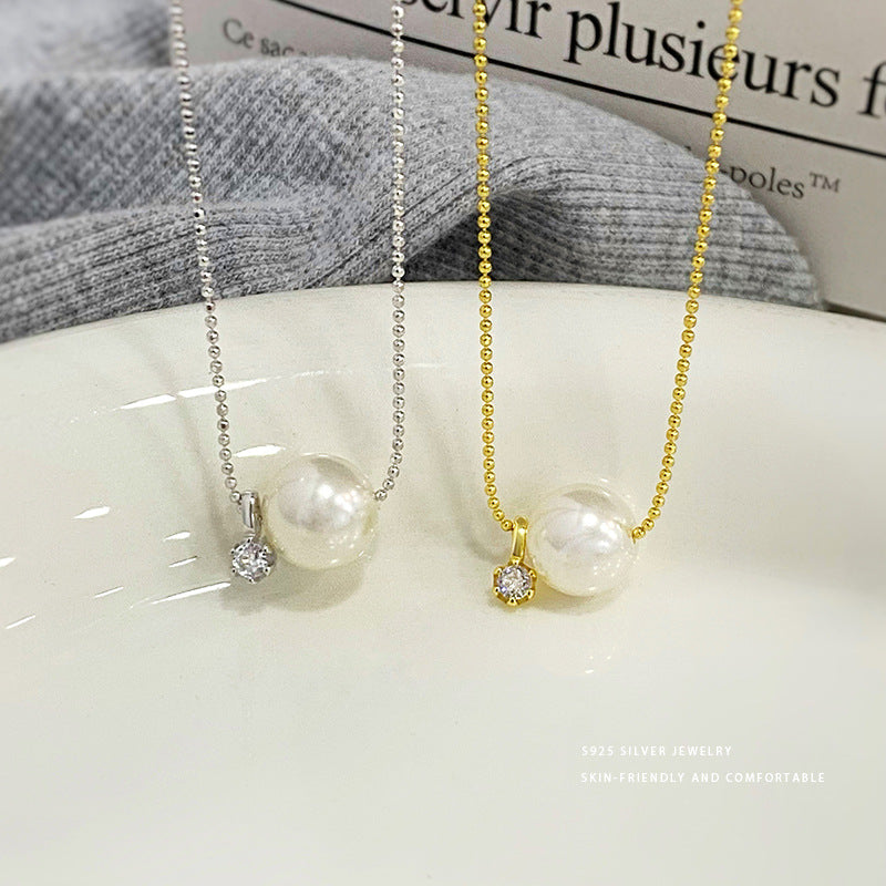 E廠【YC3369N】S925純銀簡約鋯石珍珠項鍊女輕奢高級感法式珍珠鎖骨鏈 24.05-5