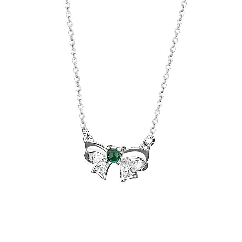 E廠【YC3403N】S925純銀優雅綠鑽蝴蝶結項鍊女復古氣質輕奢高級感鎖骨鏈 24.03-5