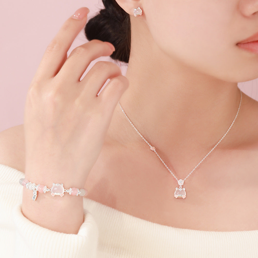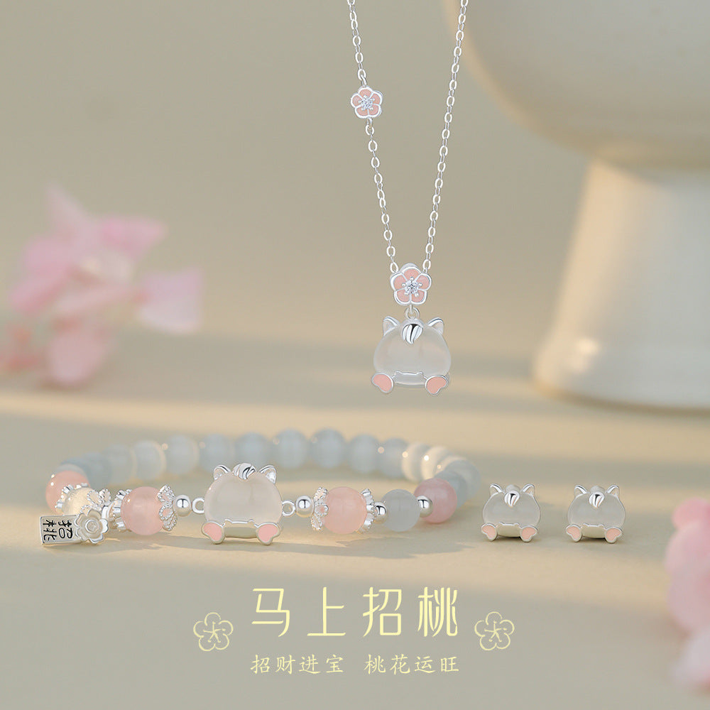 D廠【YC3405N】原創足銀S999馬上招桃項鍊氣質耳環清新手鍊百搭小眾精緻首飾 26.01-1