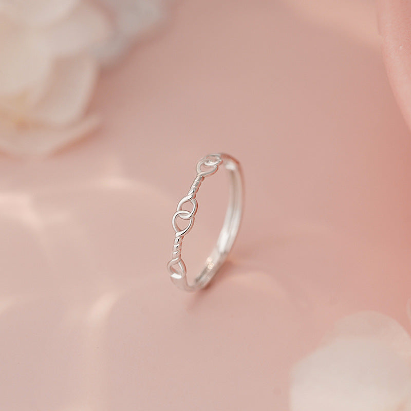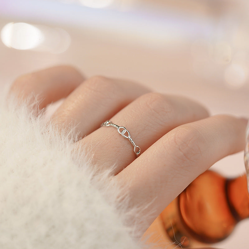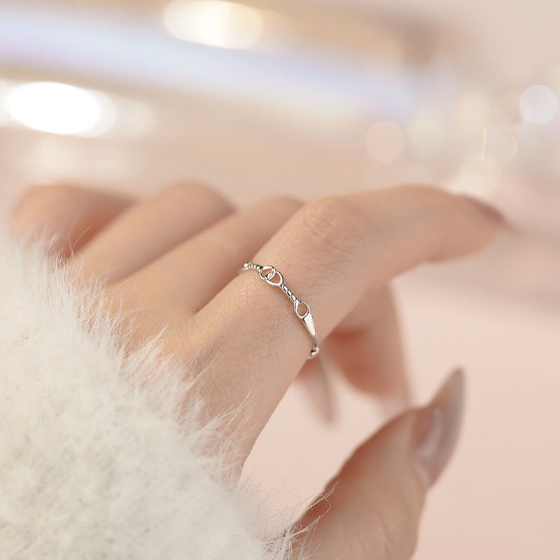 E廠【YC3407R】S925純銀簡約繩結戒指小眾設計甜美溫柔可愛文藝ins風開口戒 25.05-3