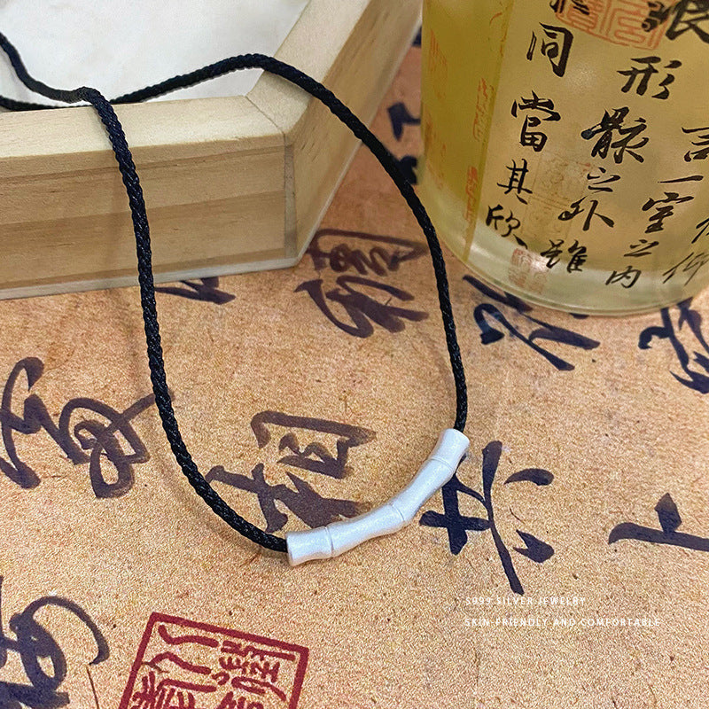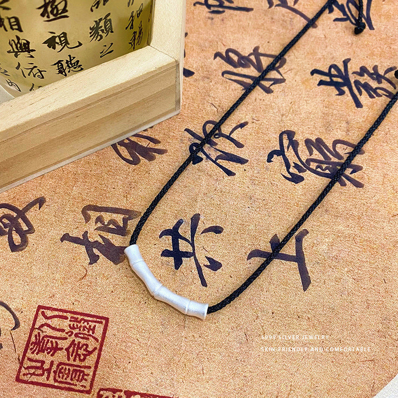 E廠【YC3449N】S999足銀本命年竹節項鍊女簡約素繩黑繩百搭顯白鎖骨鏈 24.02-3
