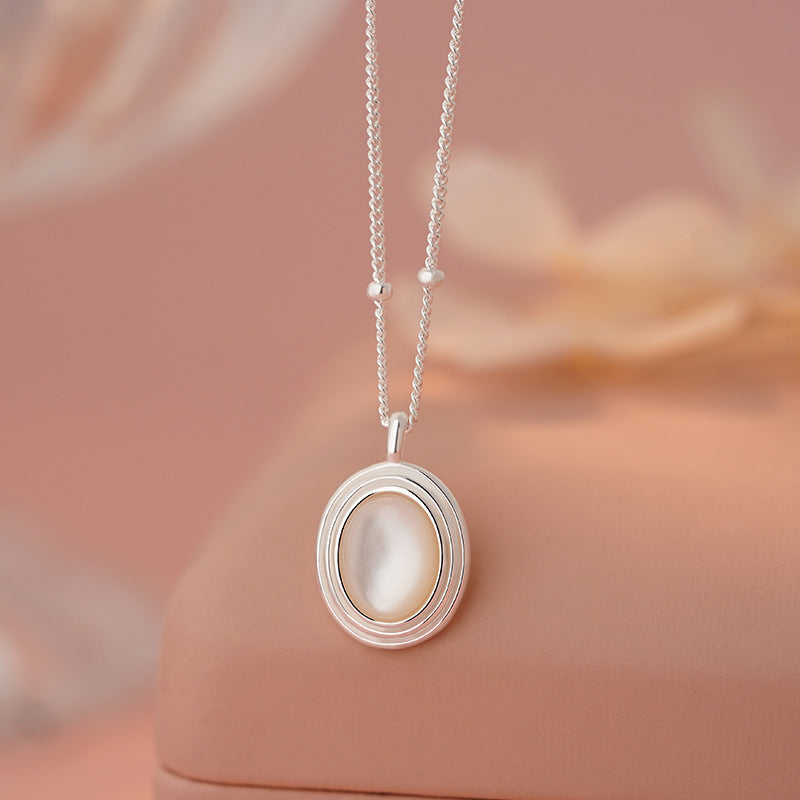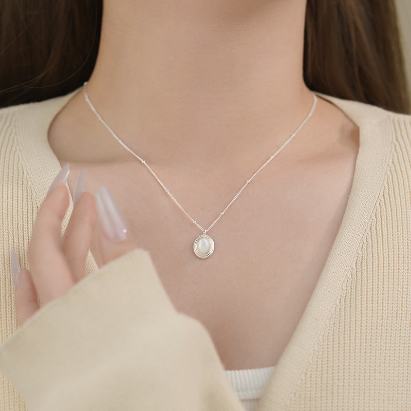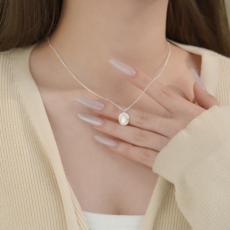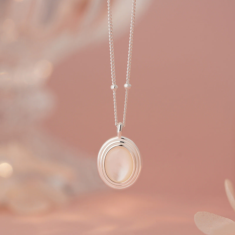 E廠【YC3454N】S925純銀橢圓形貝殼項鍊輕奢小眾高級法式復古溫柔鎖骨鏈 25.04-2