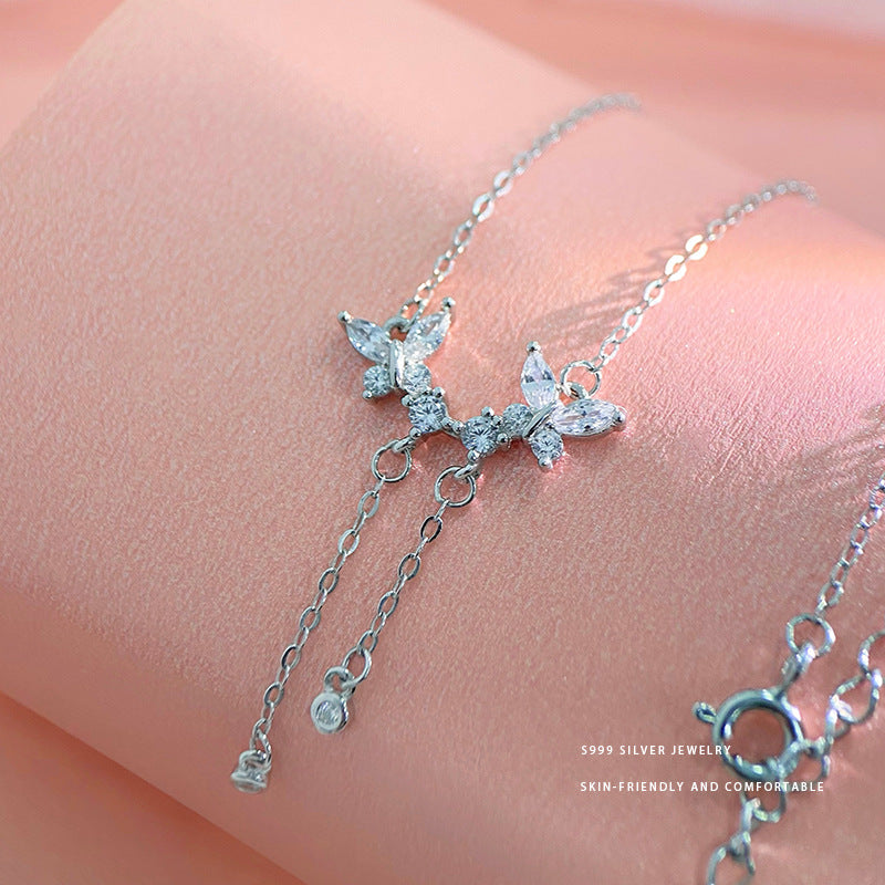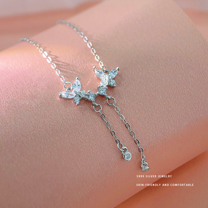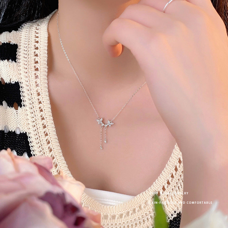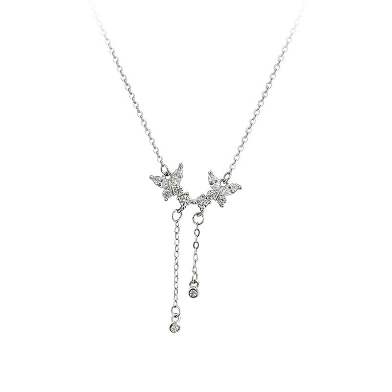 E廠【YC3469N】S999足銀精美鑲鑽蝴蝶流蘇項鍊女輕奢甜美高級感鎖骨鏈 24.05-1