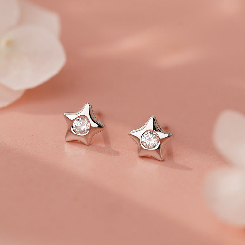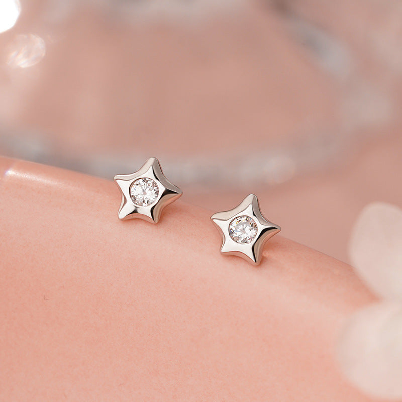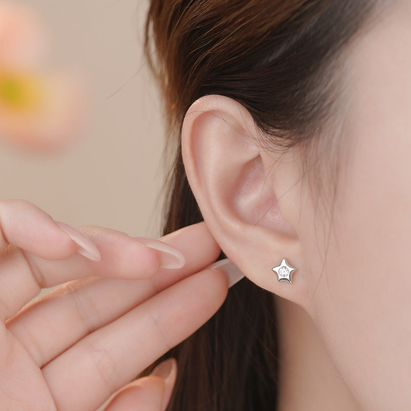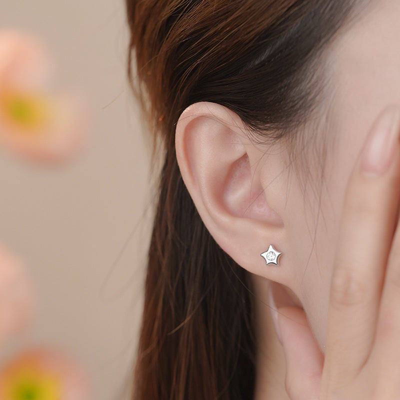E廠【YC3484E】S999足銀星星鋯石耳環小巧精緻創意簡約甜美睡覺免摘耳飾 25.10-5