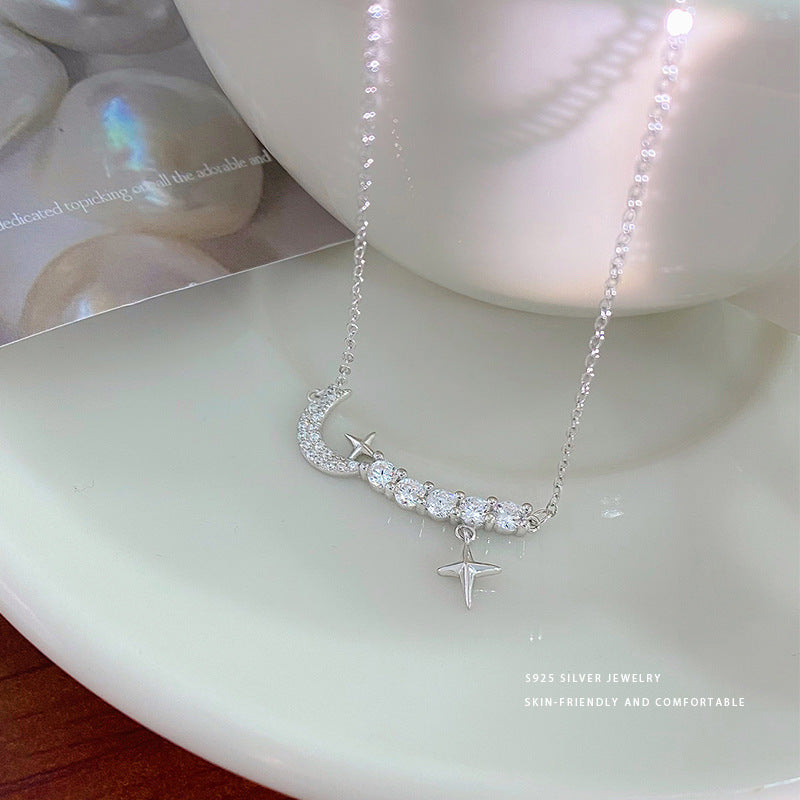 E廠【YC3532N】S925純銀精美月亮四芒星項鍊女小眾設計感輕奢氣質鎖骨鏈 24.02-3