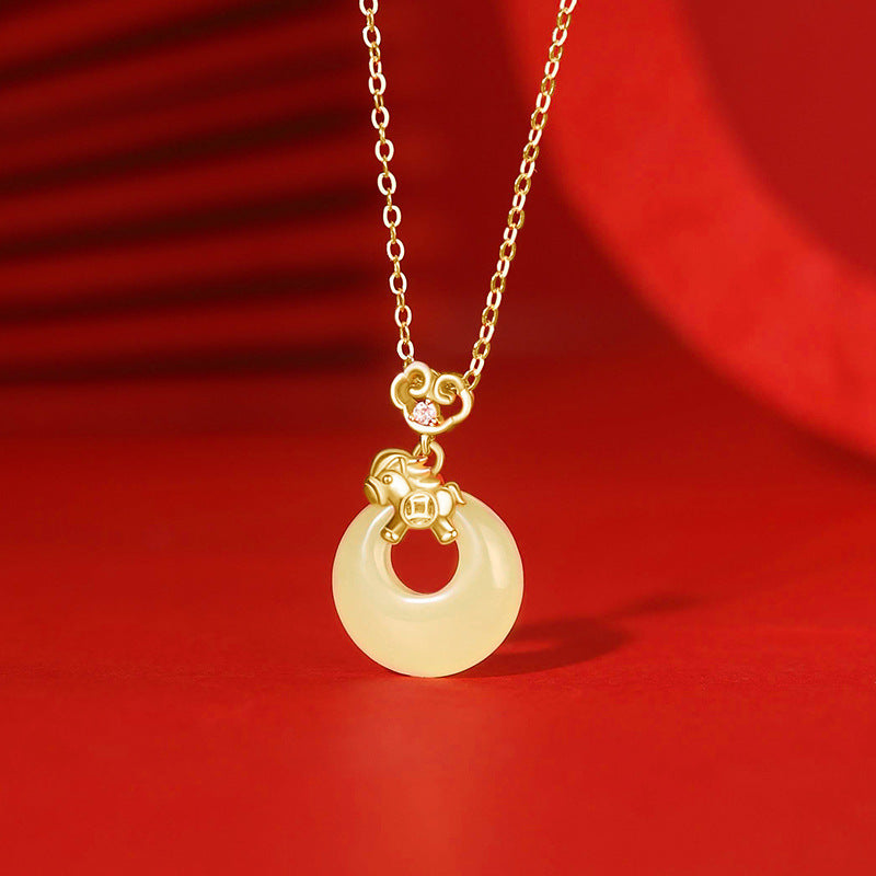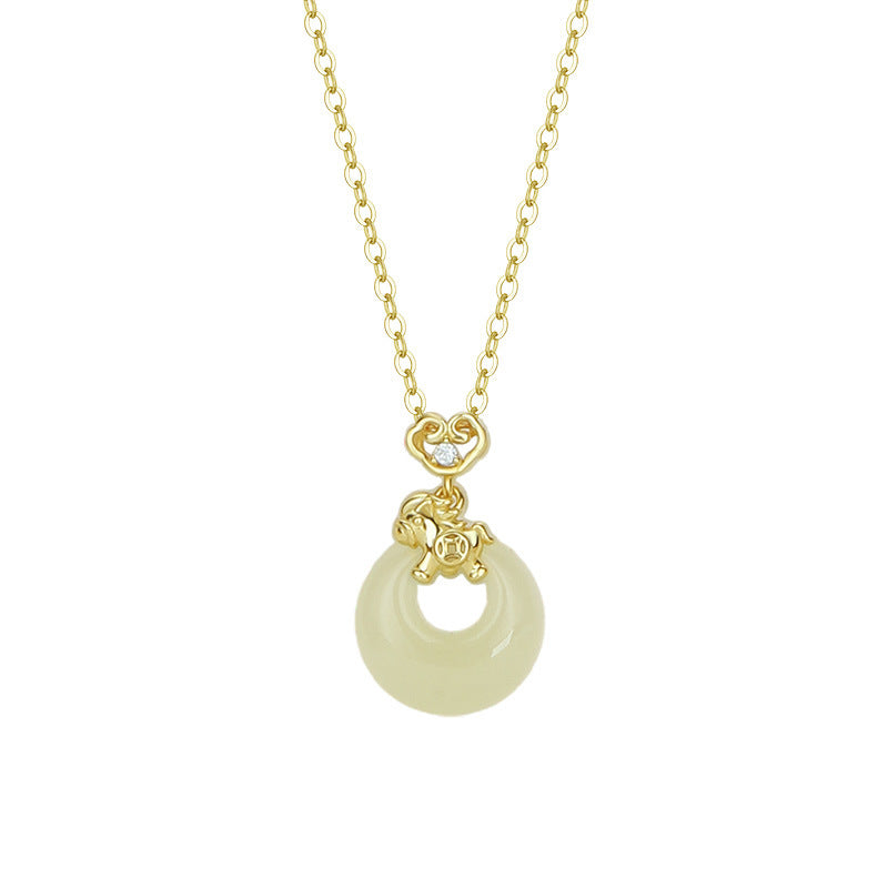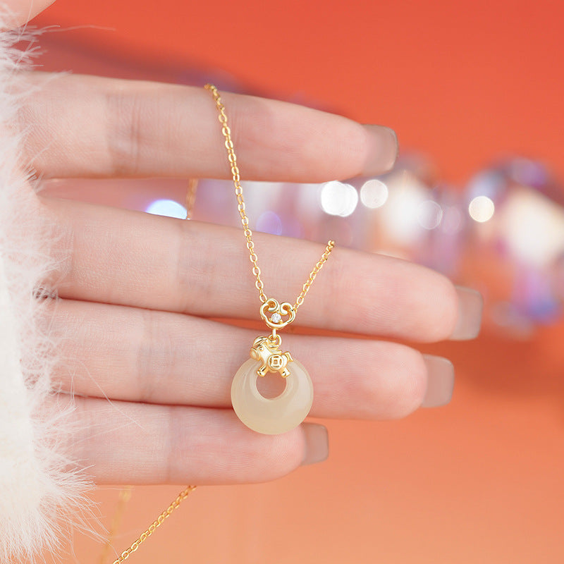 E廠【YC3540N】原創S999足銀馬上有錢平安扣項鍊女本命年復古福氣鎖骨鏈 25.10-5