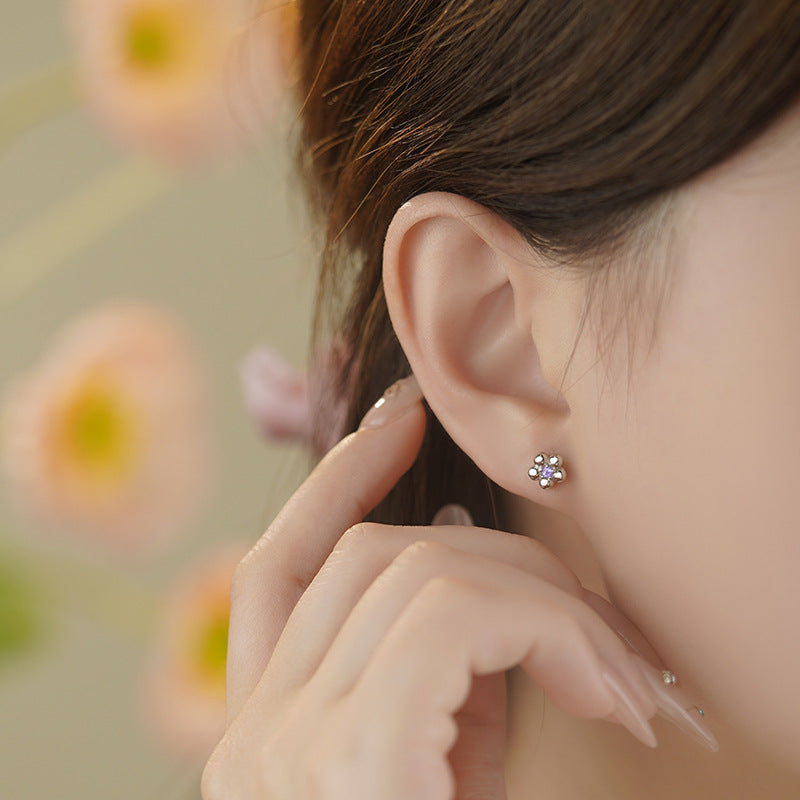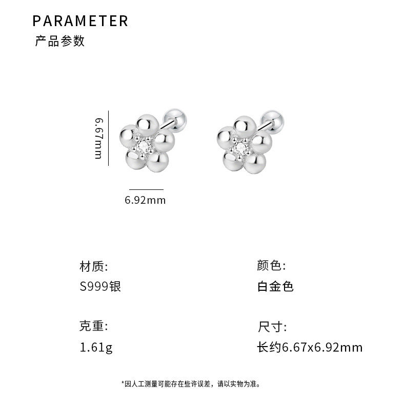 E廠【YC3565E】S999足銀葡萄螺絲釘釘文藝溫柔韓風精緻養耳洞耳飾 25.06-2