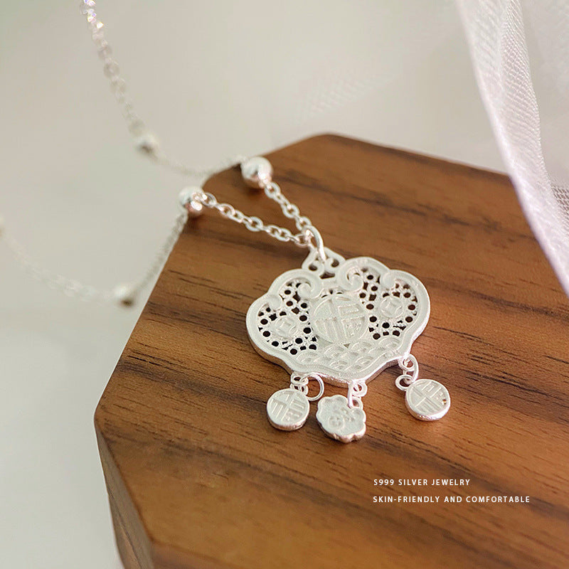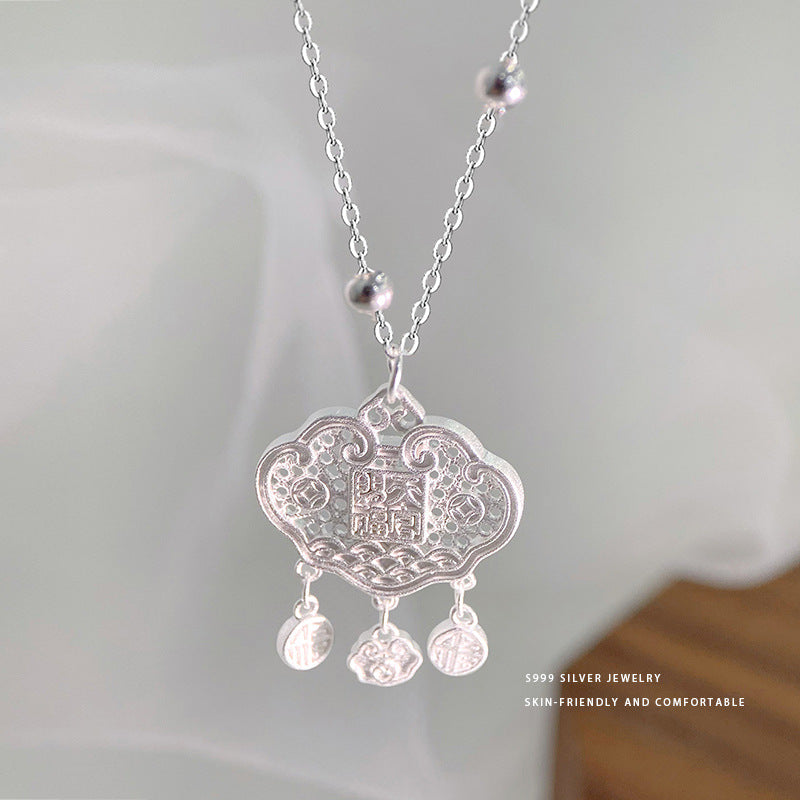 E廠【YC3602N】S999足銀國風天官賜福平安鎖項鍊女 24.02-1