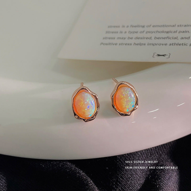 E廠【YC3632N-9857E】S925純銀歐泊熔岩套裝女小眾高級感氣質鎖骨鏈個性耳飾品 24.03-5