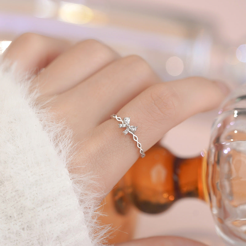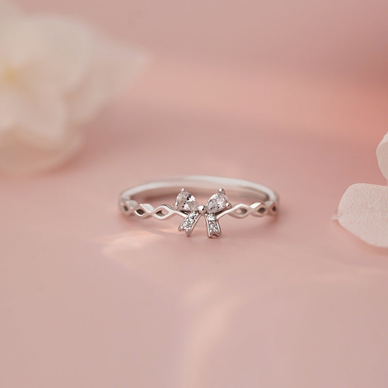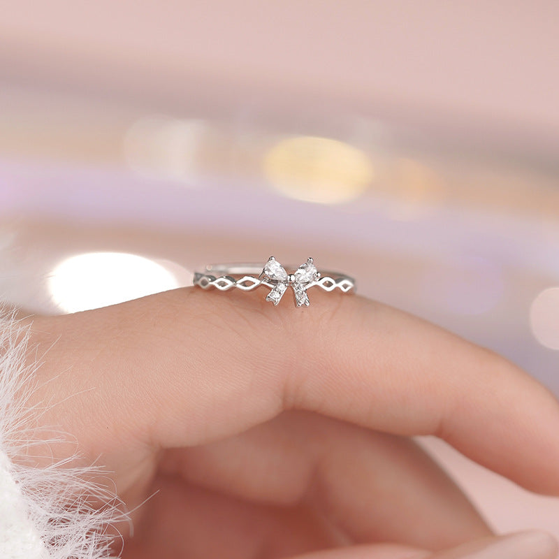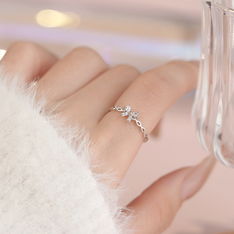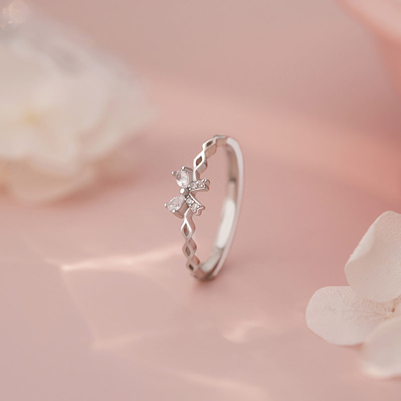 E廠【YC3650R】S999足銀甜美蝴蝶結戒指女少女開口可調整食指戒指環 25.06-3