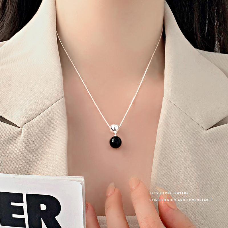 E廠【YC3684N】S925純銀時尚黑瑪瑙圓球項鍊女輕奢高級感百搭顯白款頸飾 24.02-1