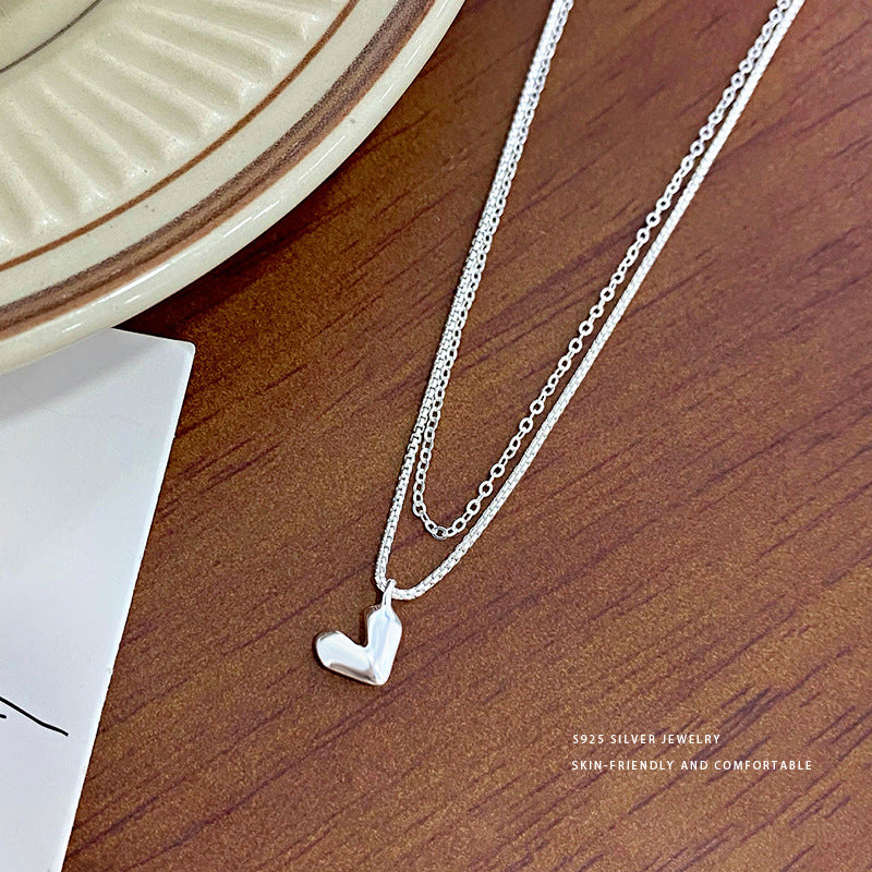 E廠【YC3688N】S925純銀小巧雙層立體愛心項鍊女輕奢時尚設計感氣質頸飾 24.02-1
