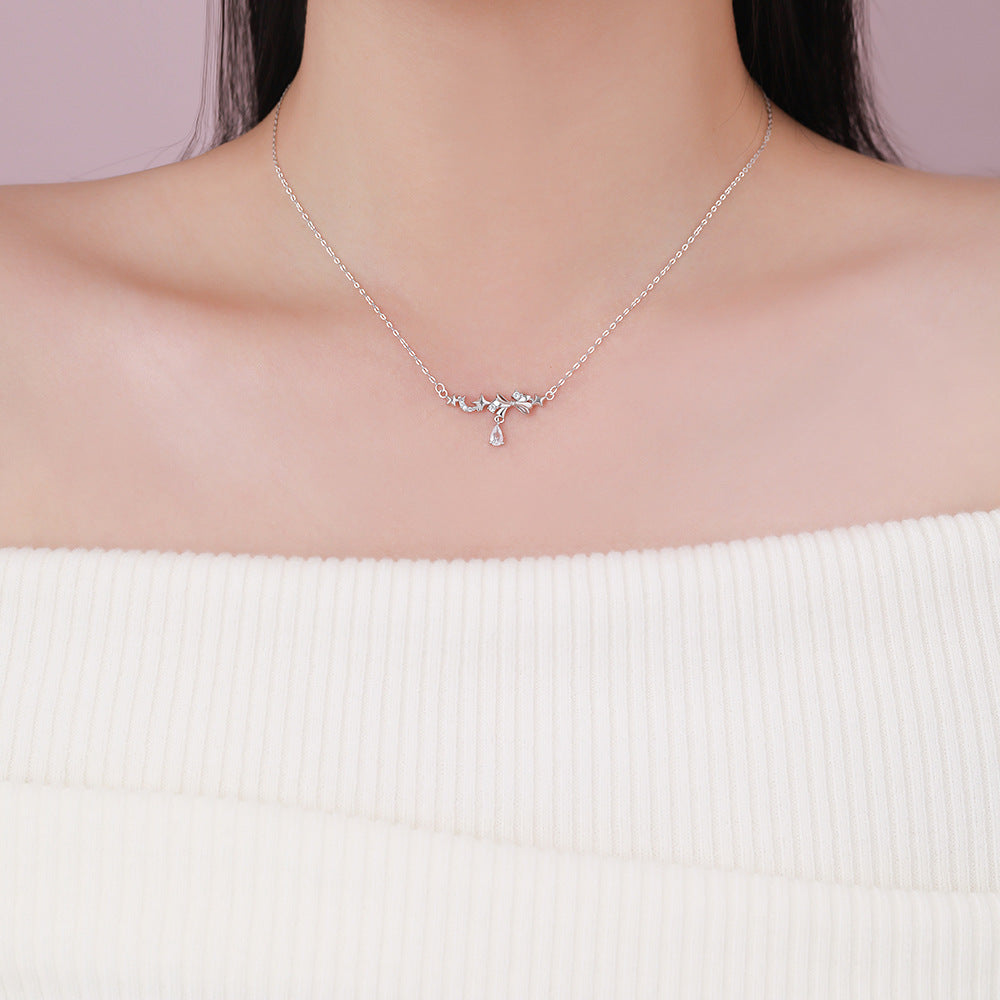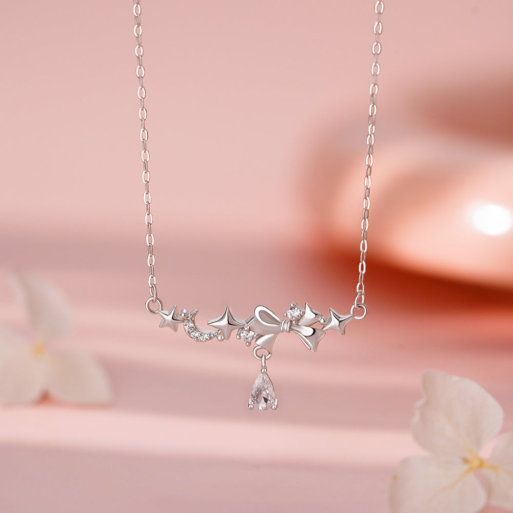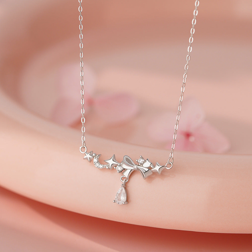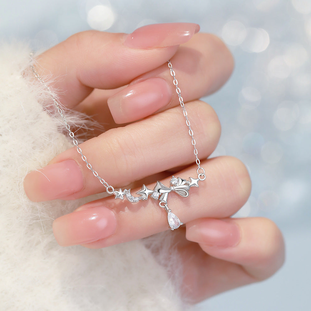 D廠【YC3705N】足銀S999韓風星月蝴蝶結項鍊女韓版仙氣可愛淑女鎖骨鏈跨境 26.03-2