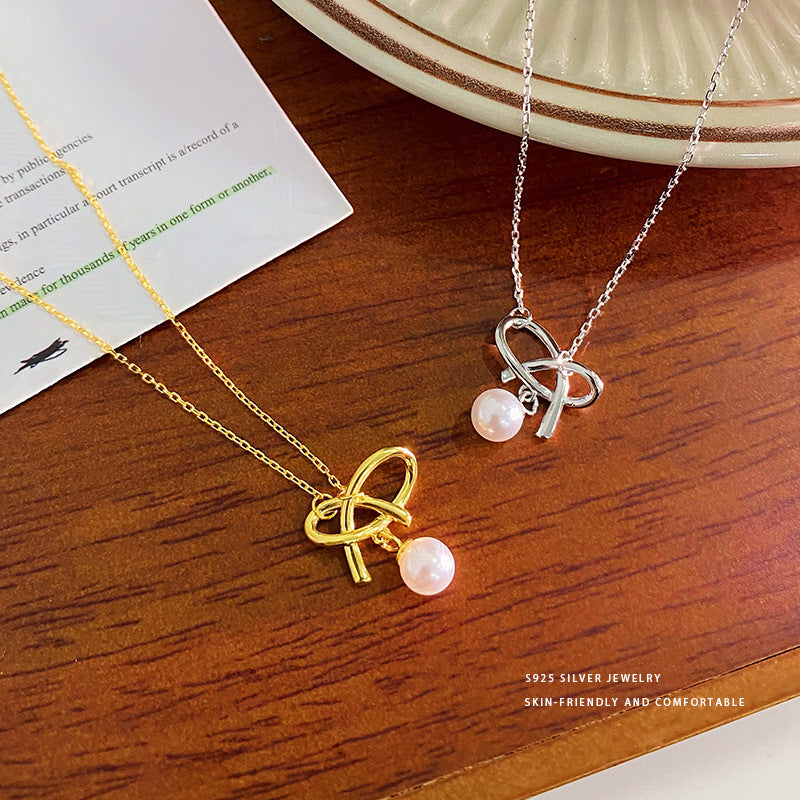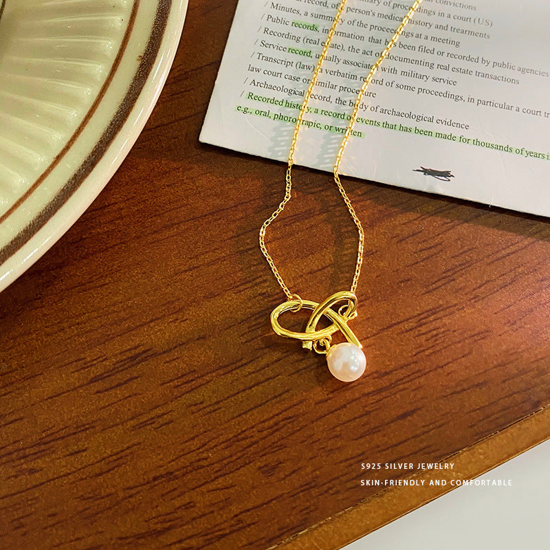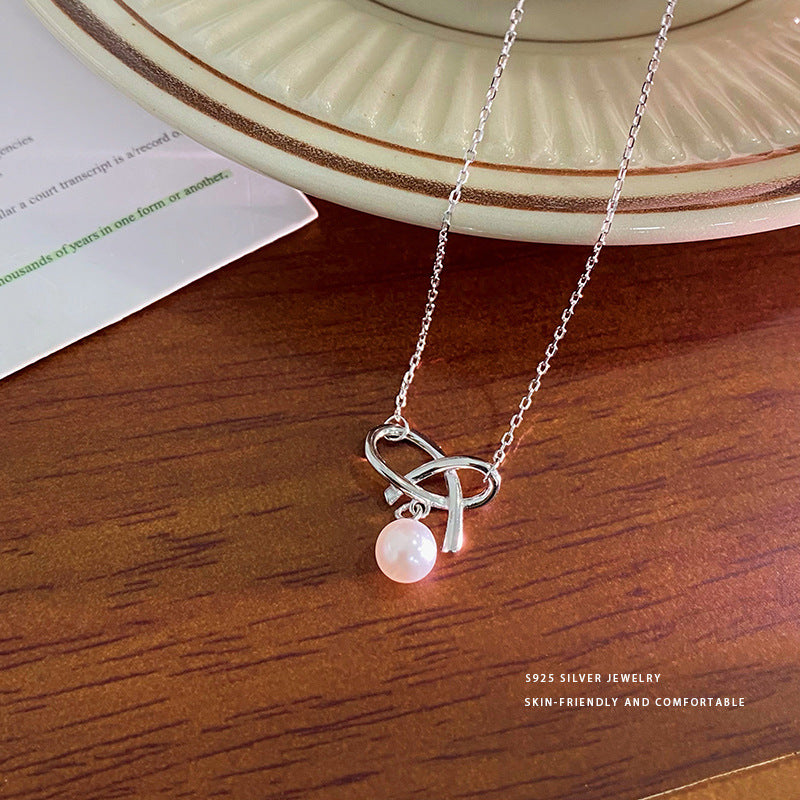 E廠【YC3731N】S925純銀時尚扭結珍珠項鍊女輕奢高級感夏季新款鎖骨鏈 24.04-4