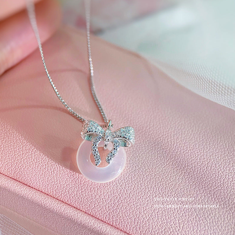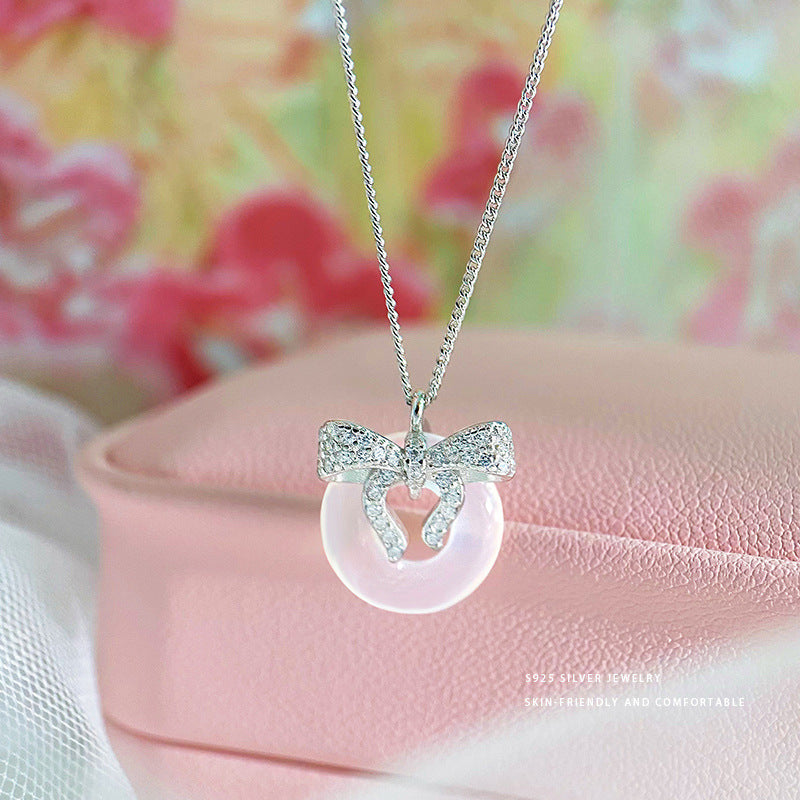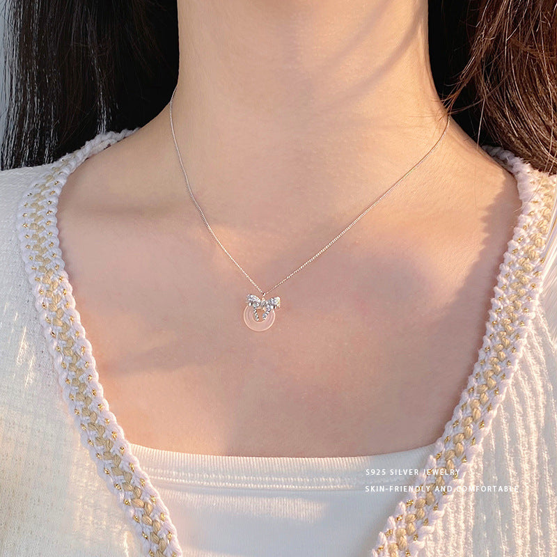 E廠【YC3751N】S925純銀甜美蝴蝶結平安扣項鍊女小眾設計感頸飾 24.05-3