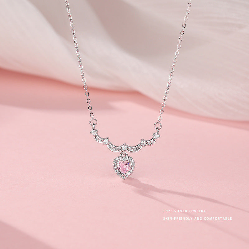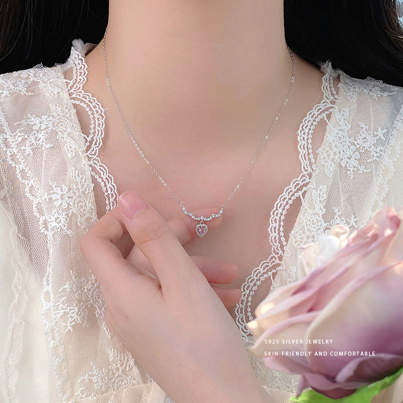 E廠【YC3761N】S925純銀甜粉鑽愛心項鍊女輕奢甜美鎖骨鏈 24.05-5