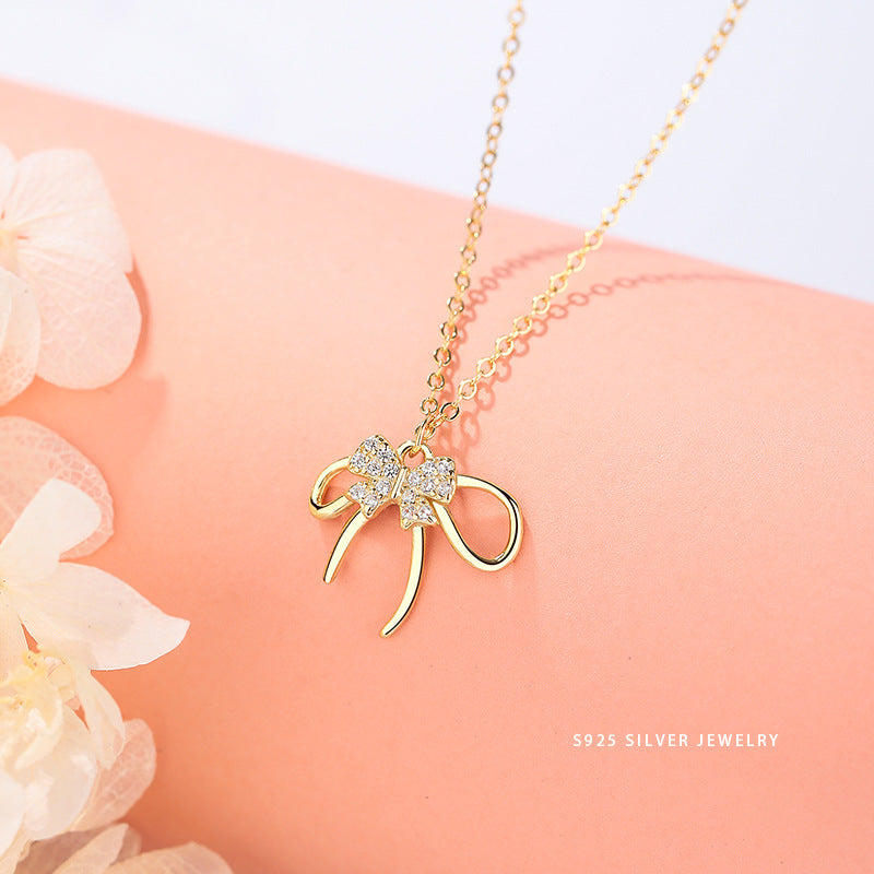 E廠【YC3767N】S925純銀精美蝴蝶結項鍊女高級感設計感新款輕奢鎖骨鏈 24.06-1
