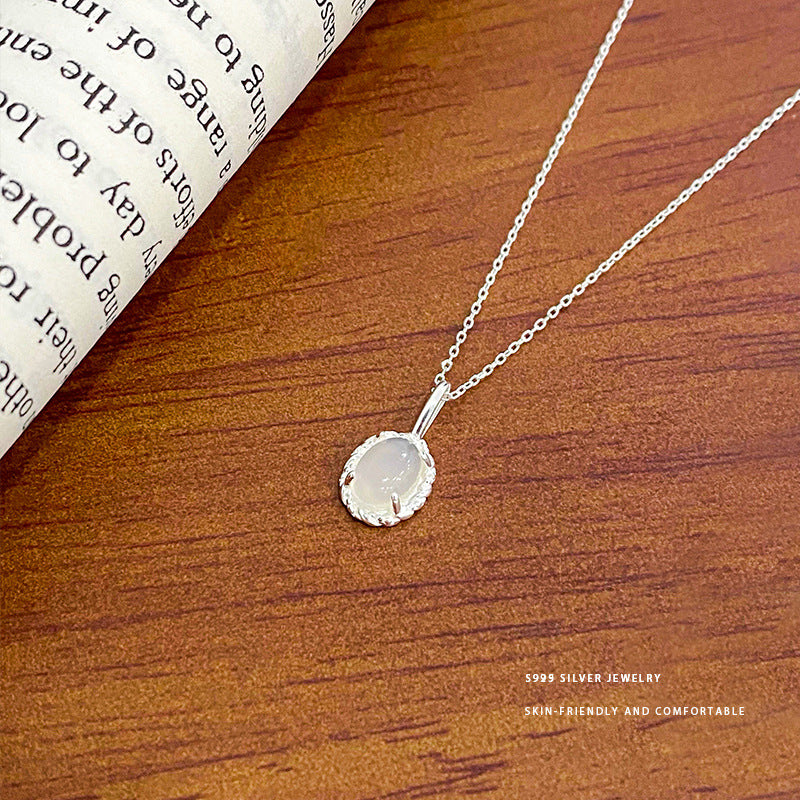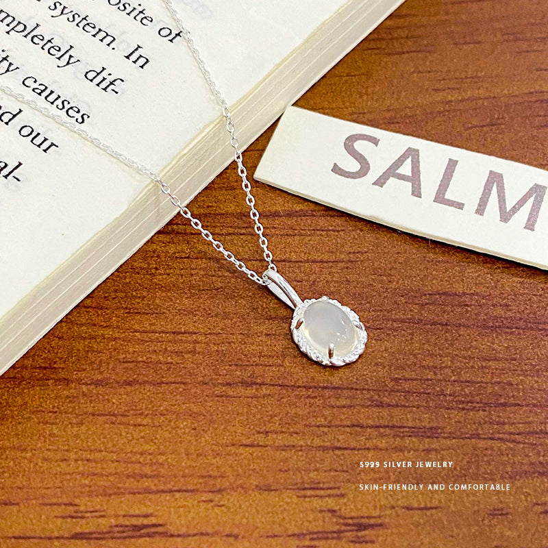 E廠【YC3782N】S925純銀簡約橢圓形瑪瑙項鍊女ins風時尚冷淡風夏日新款鎖骨鏈 24.04-3