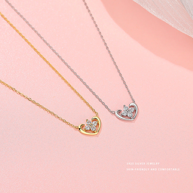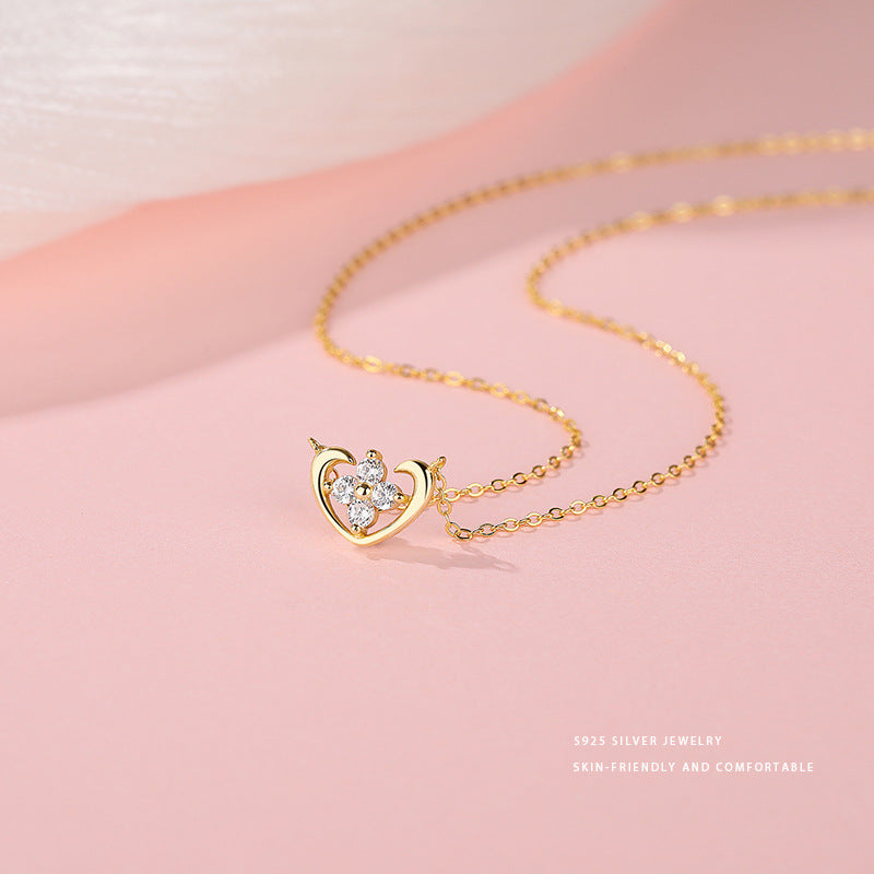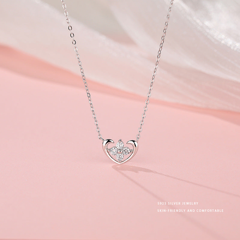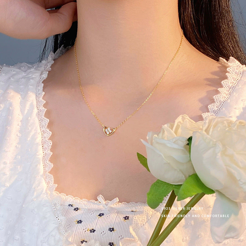 E廠【YC3818N】S925純銀小清新愛心四葉花項鍊女小巧精緻少女感新款頸飾 24.05-3
