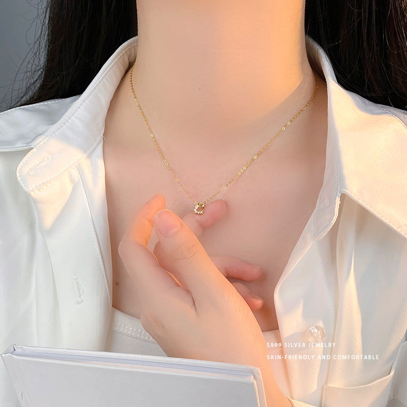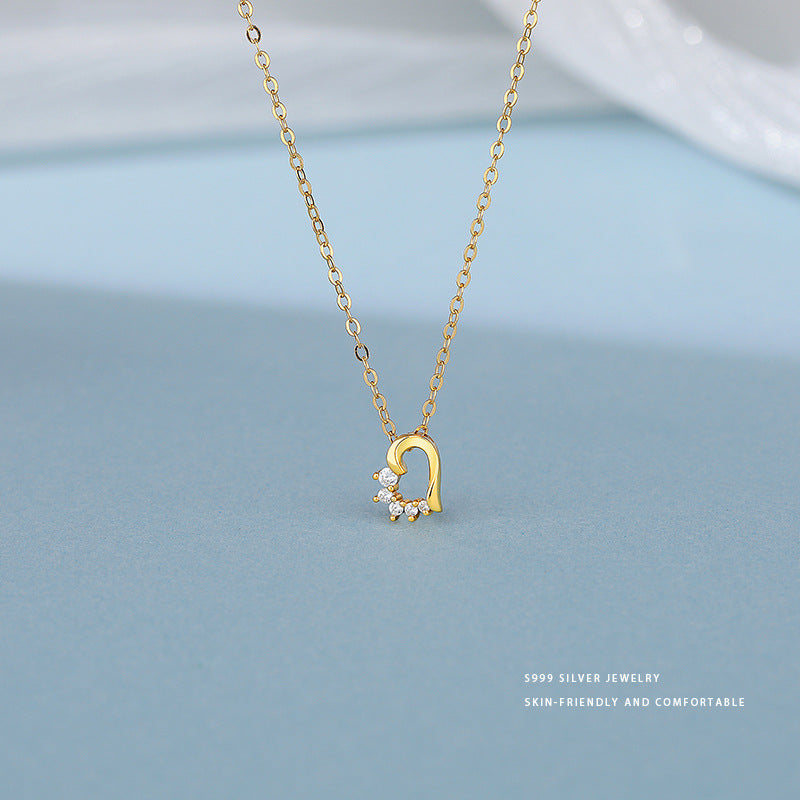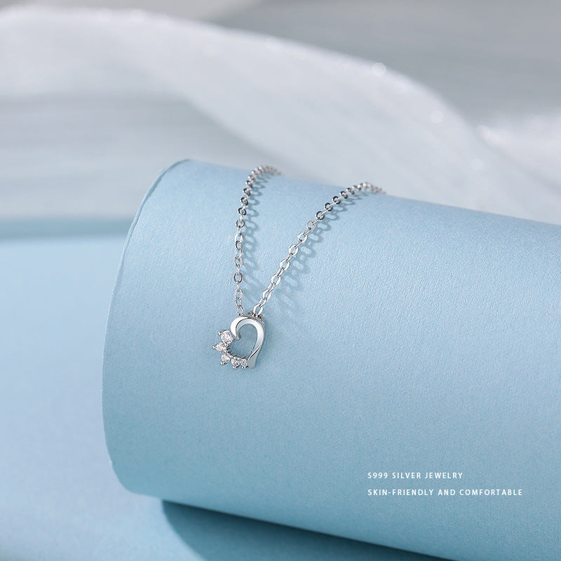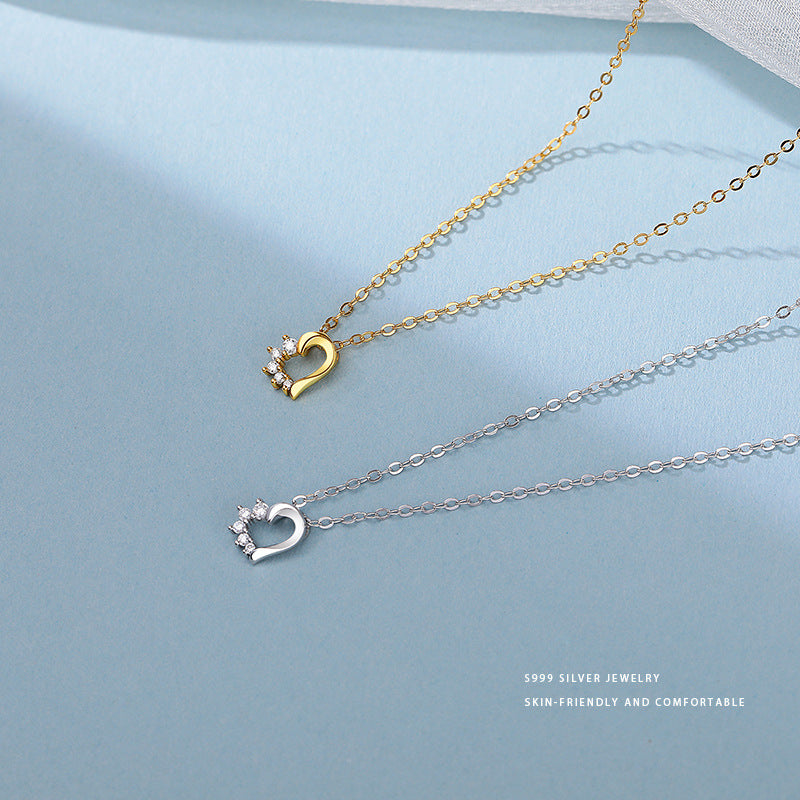 E廠【YC3819N】S999足銀氣質鏤空鑲鑽愛心項鍊女輕奢高級感毛衣鏈鎖骨鏈 24.05-4