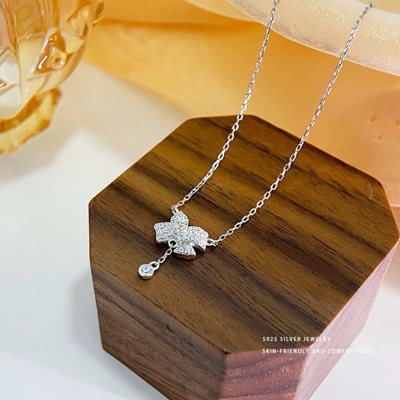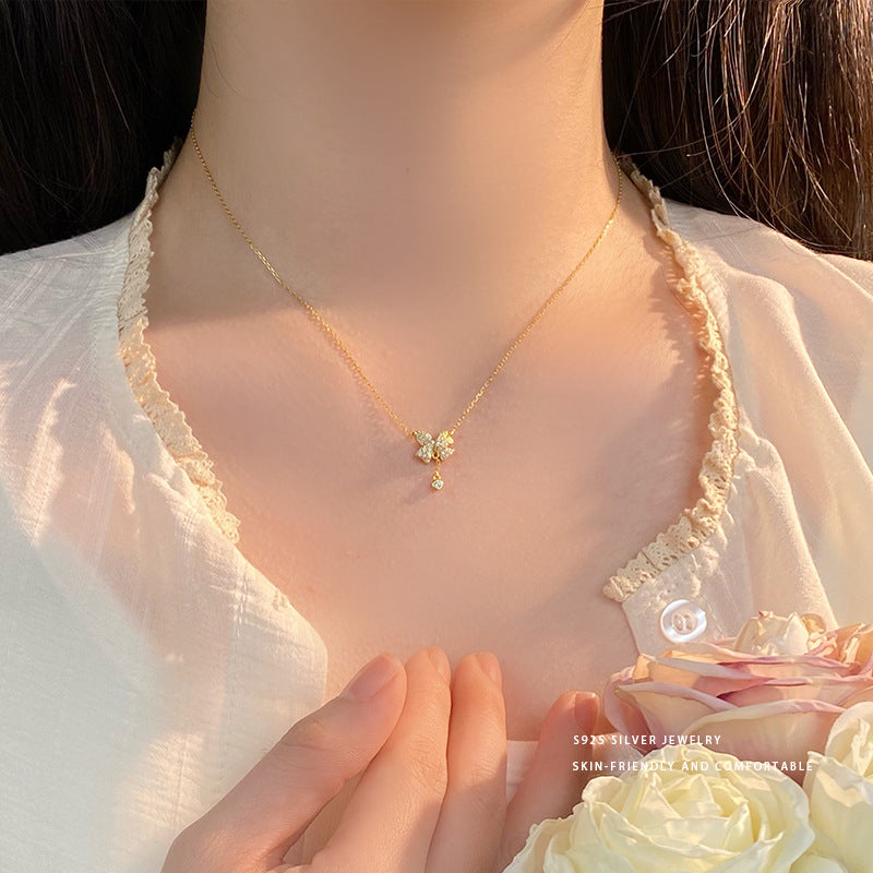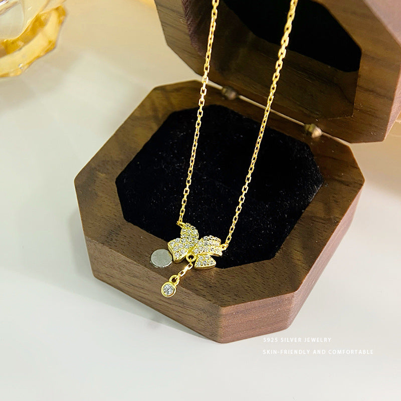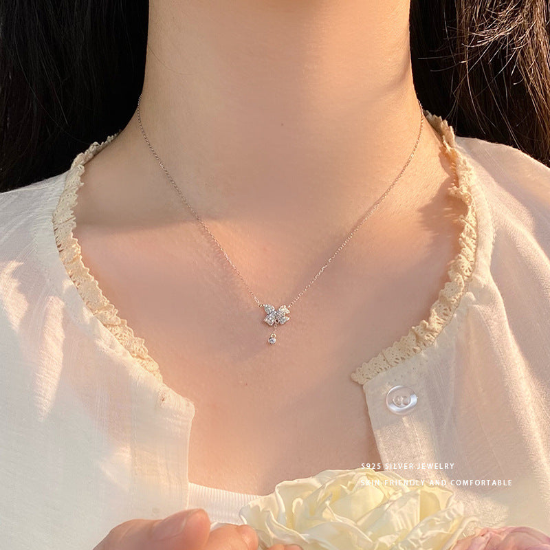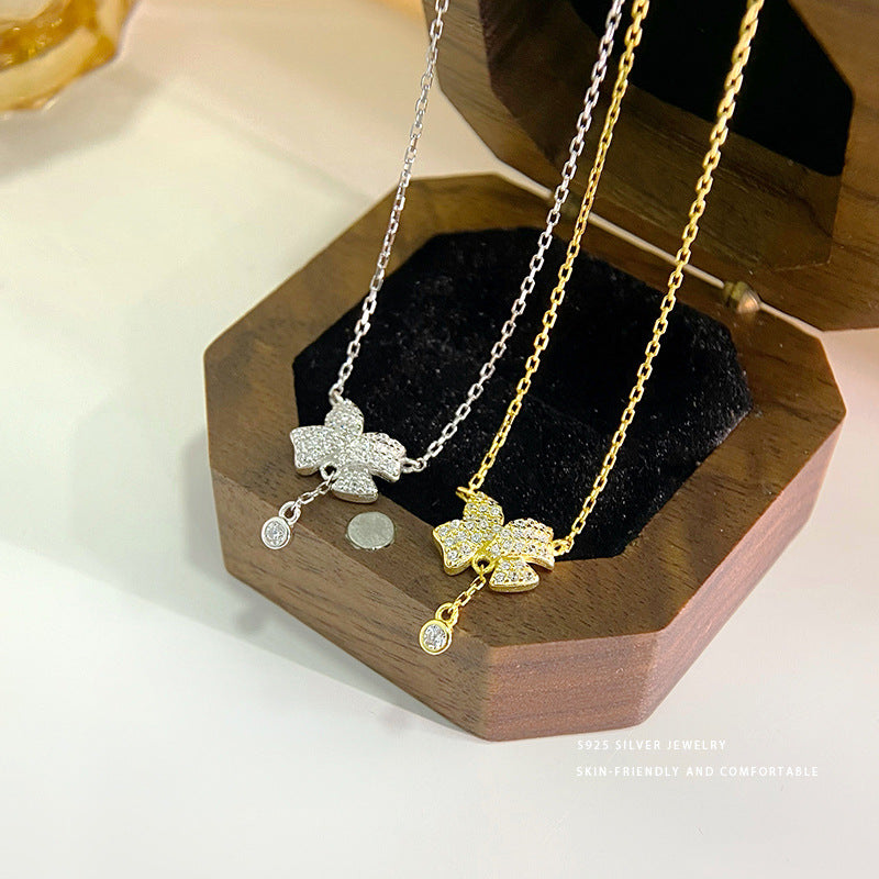 E廠【YC3831N】S925純銀甜蝴蝶結流蘇項鍊女輕奢高級感新款百搭鎖骨鏈 24.05-1