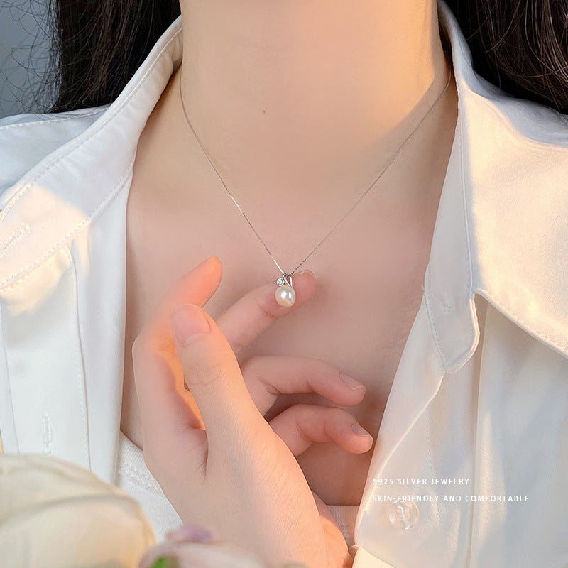 E廠【YC3832N】S925純銀大氣珍珠鋯石項鍊簡約日常百搭頸鏈春夏鎖骨鏈 24.05-4