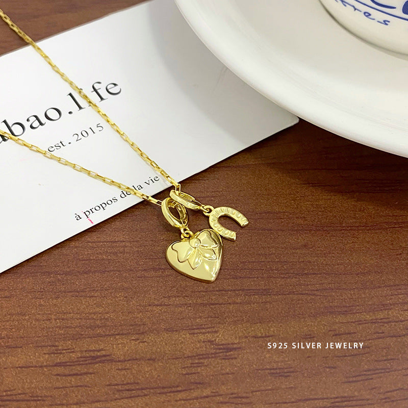 E廠【YC3854N】S925純銀時尚蝴蝶結愛心系列套裝女ins風甜美新款耳環鎖骨鍊 24.06-1