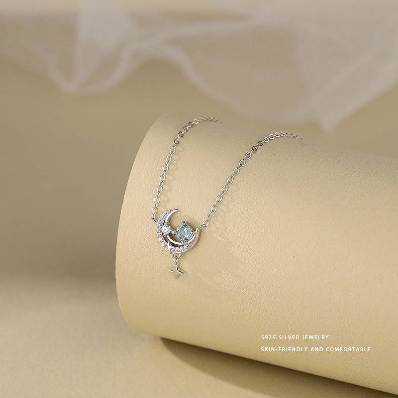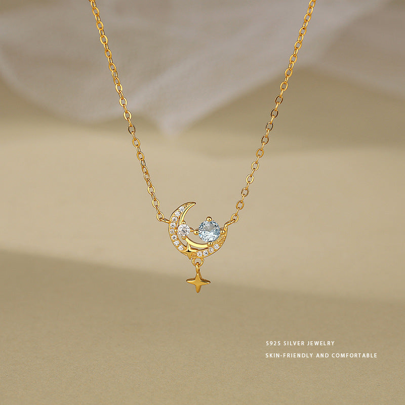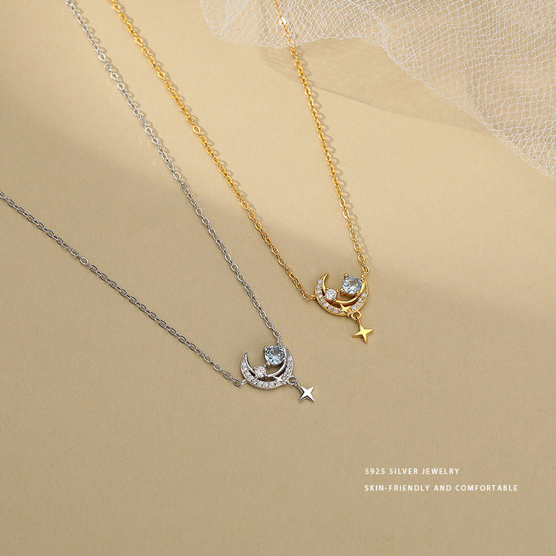 E廠【YC3870N】S925純銀夢幻星月星球項鍊女小眾設計感高級感時尚鎖骨鏈 24.05-4