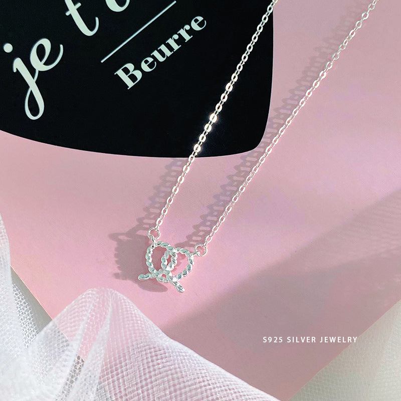 E廠【YC3872N】S925純銀簡約麻花愛心麵包項鍊女日常百搭頸鍊鎖骨鏈春夏款 24.06-1