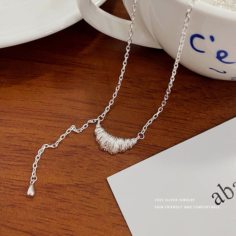 E廠【YC3880N】S925純銀簡約牛角包流蘇水滴項鍊女小眾鎖骨鍊ins冷淡風頸鍊 24.05-5