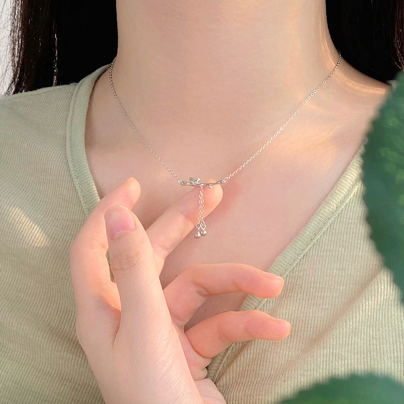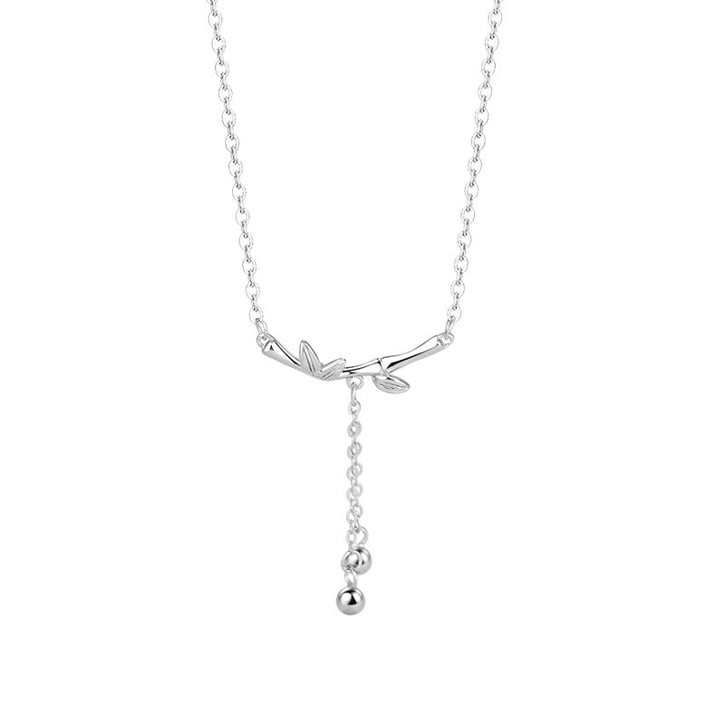 E廠【YC3890N】S999足銀小清新個性可愛竹節葉子流蘇項鍊女簡約百搭爆款 24.06-2