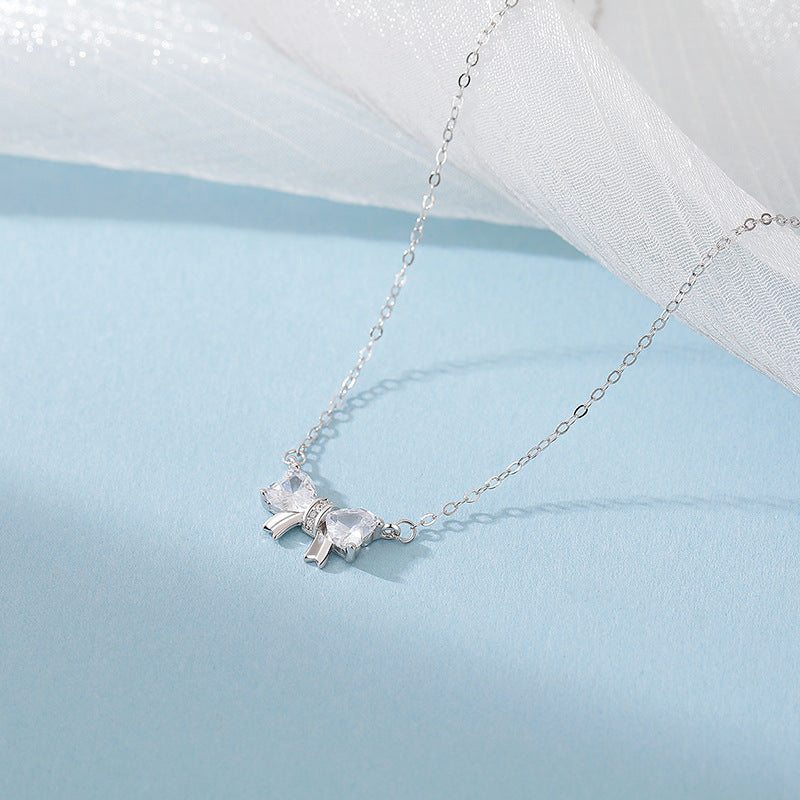 E廠【YC3900N】S999足銀可愛小清新夏季蝴蝶結項鍊女在逃公主爆項鍊 24.06-2