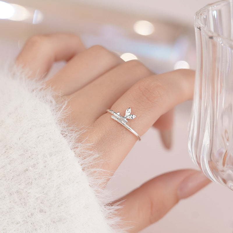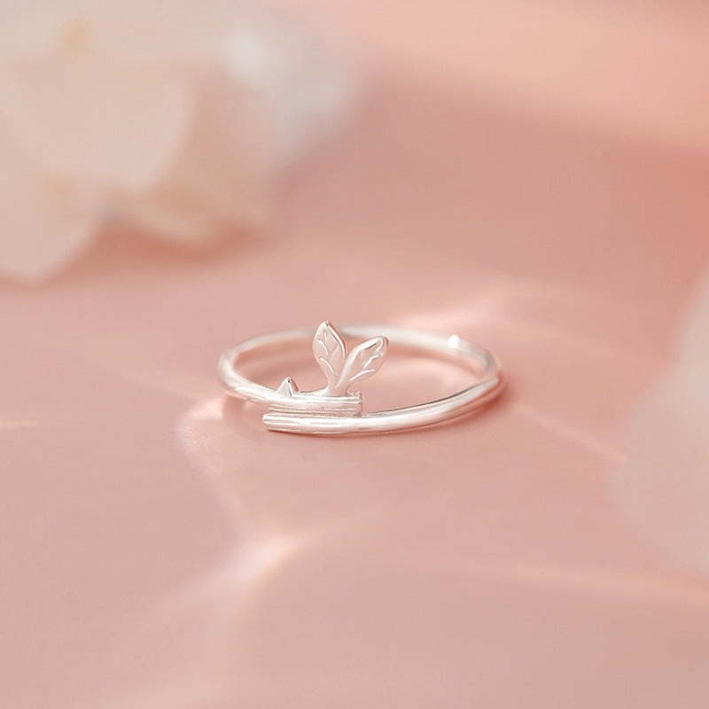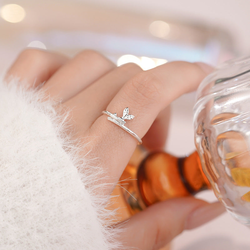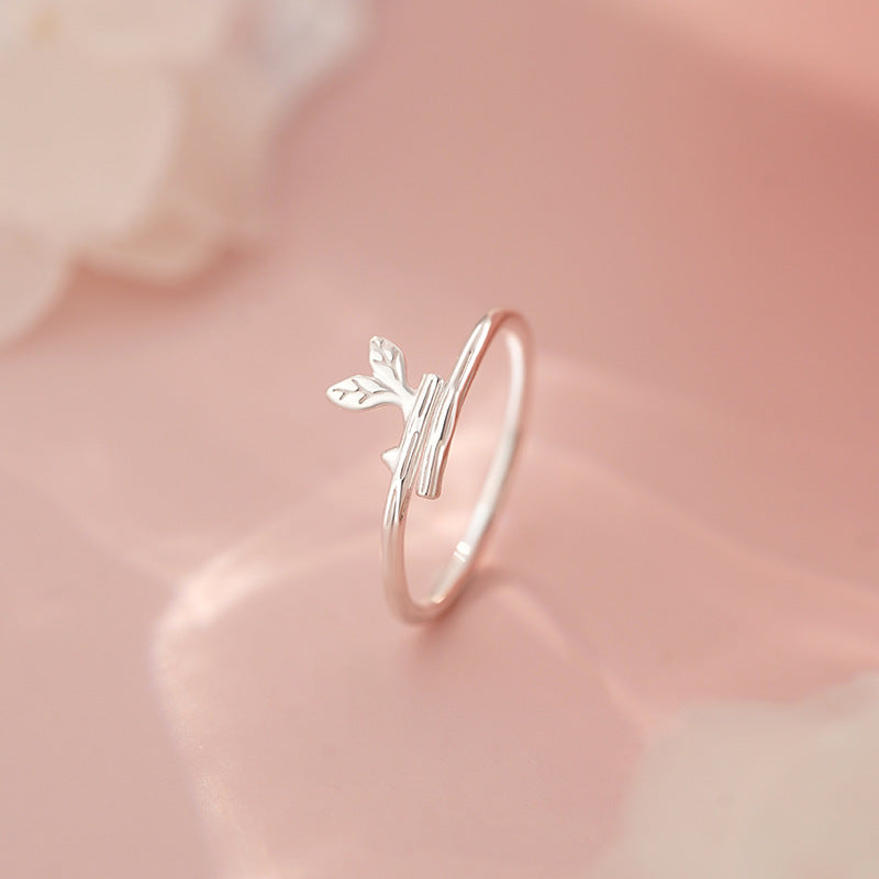 E廠【YC3900R】S999足銀輕奢樹枝樹葉小芽開口戒指女感氛圍感森系高級感指環 25.07-1