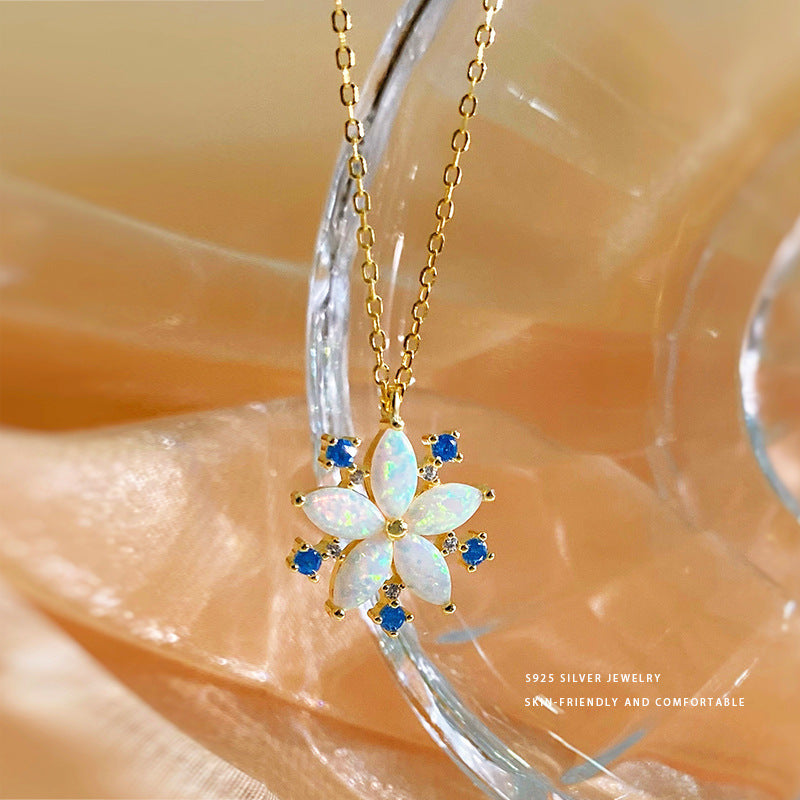 E廠【YC3906N】S925純銀夢幻雪花歐泊項鍊女新款秋冬毛衣鏈設計感鎖骨鏈 24.05-5