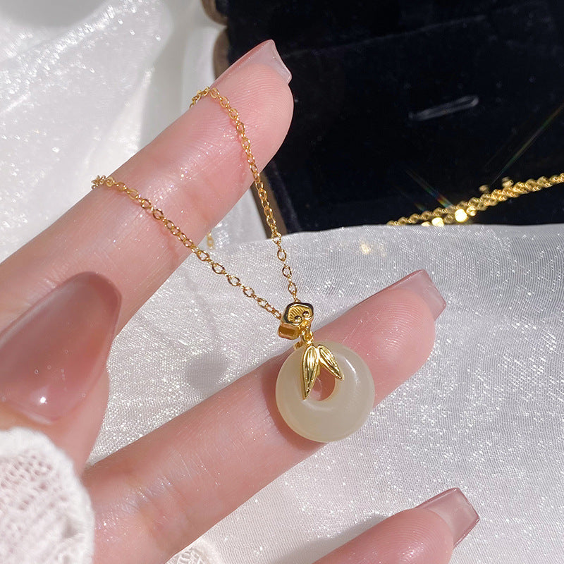 E廠【YC3913N】S999足銀竹葉平安扣項鍊新款氣質款清新百搭送媽媽鎖骨鏈 24.10-4