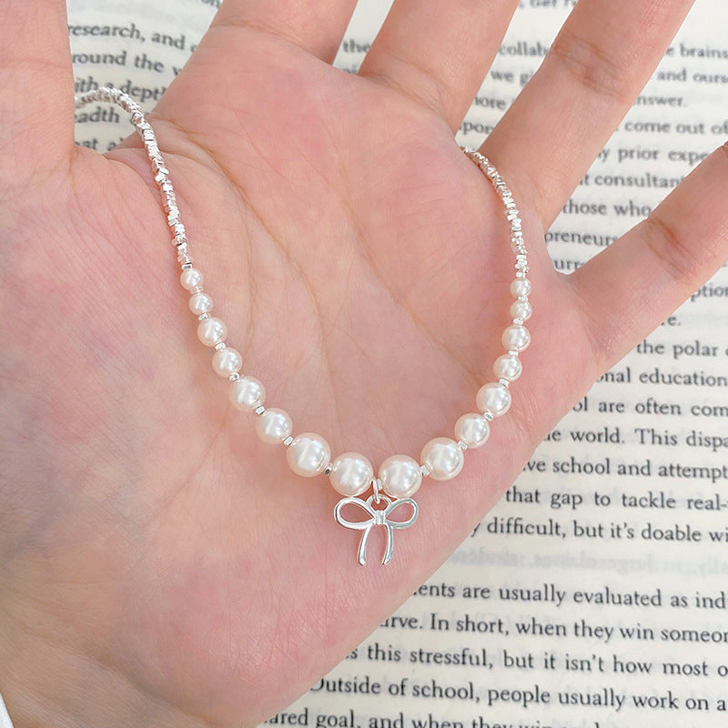 E廠【YC3914N】S925純銀輕奢珍珠頸鍊碎銀子項鍊女小眾設計高級感鎖骨鏈 24.07-1