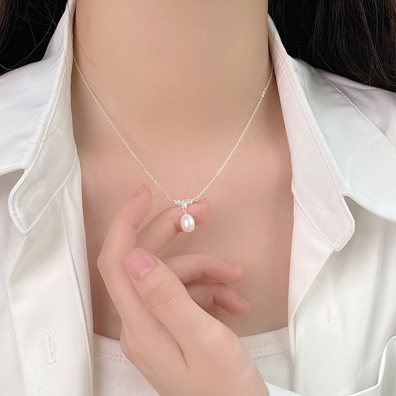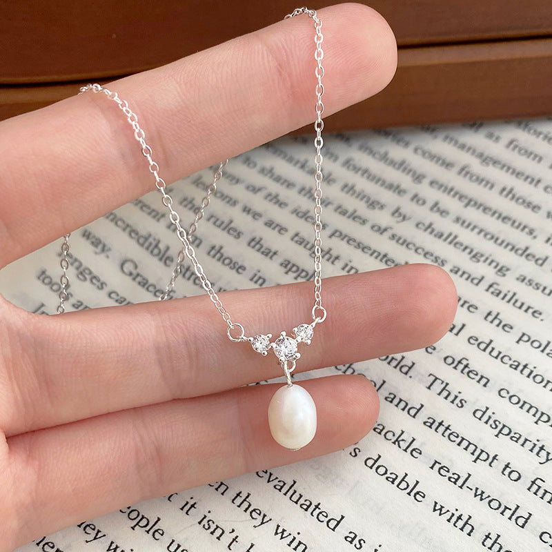 E廠【YC3921N】S925純銀簡約款幾何珍珠項鍊女個性ins風百搭氣質鎖骨鏈 24.06-3