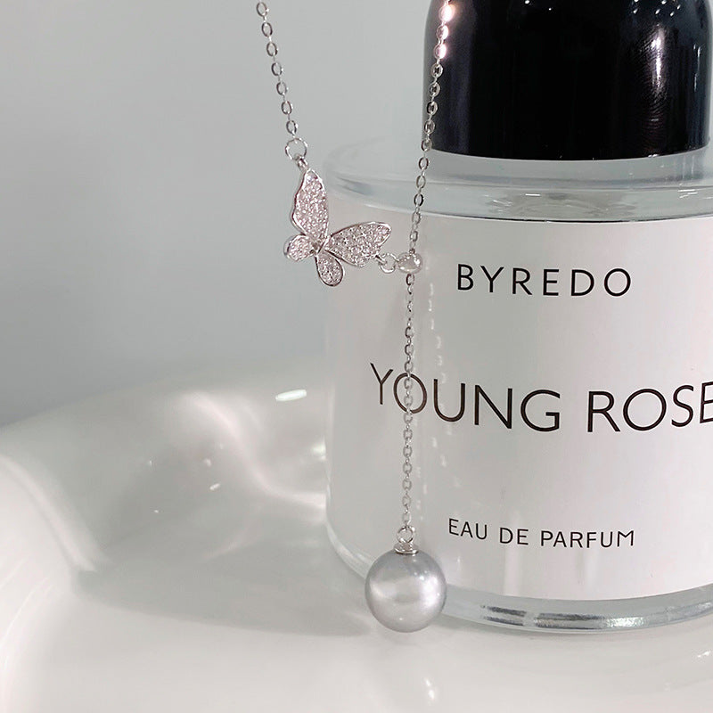 E廠【YC3927N】S925純銀個性簡約蝴蝶珍珠流蘇項鍊女百搭高級感輕奢項鍊 24.06-2