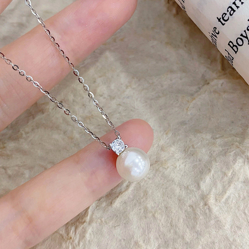 E廠【YC3932N】S925純銀個性鋯石珍珠項鍊女2024爆款時尚精緻吊墜鎖骨鏈 24.06-3