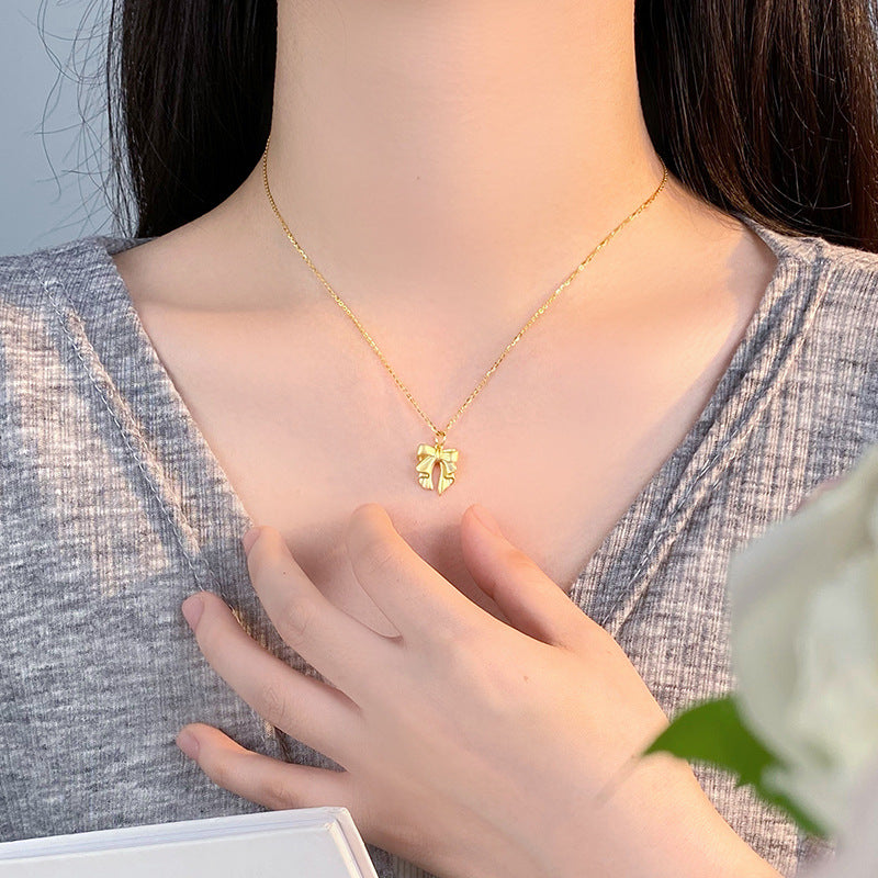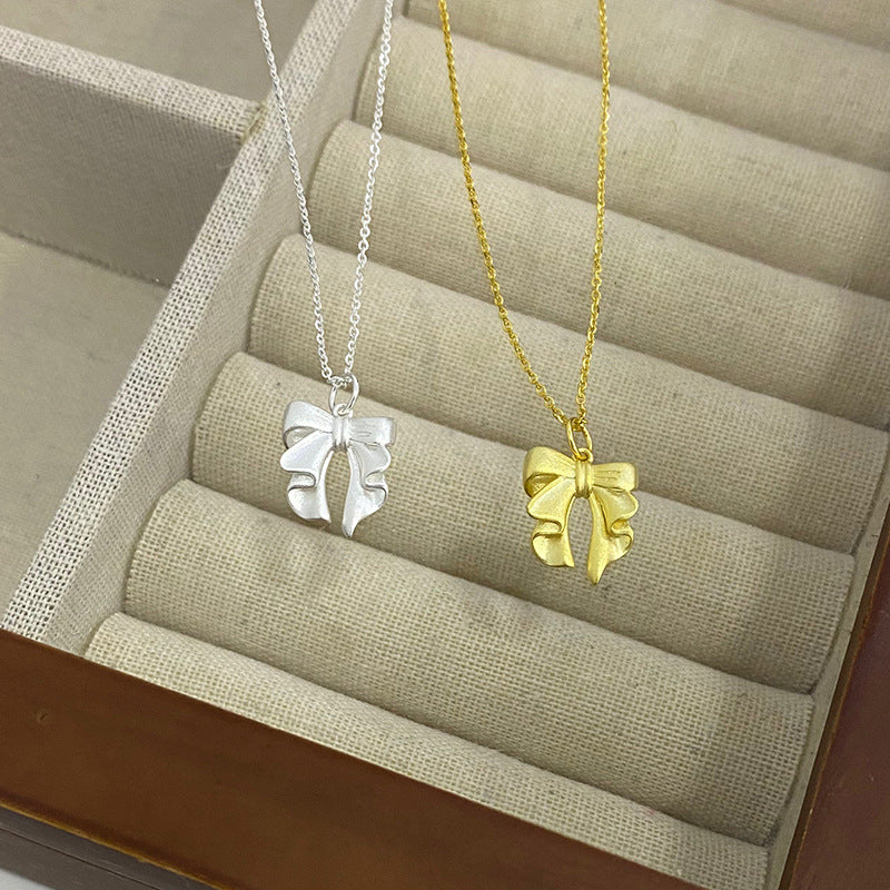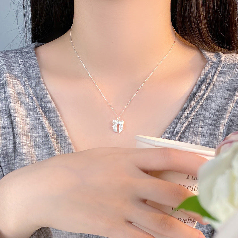 E廠【YC3945N】S925純銀輕奢蝴蝶結項鍊女個性高級感甜美溫柔鎖骨鏈 24.06-3
