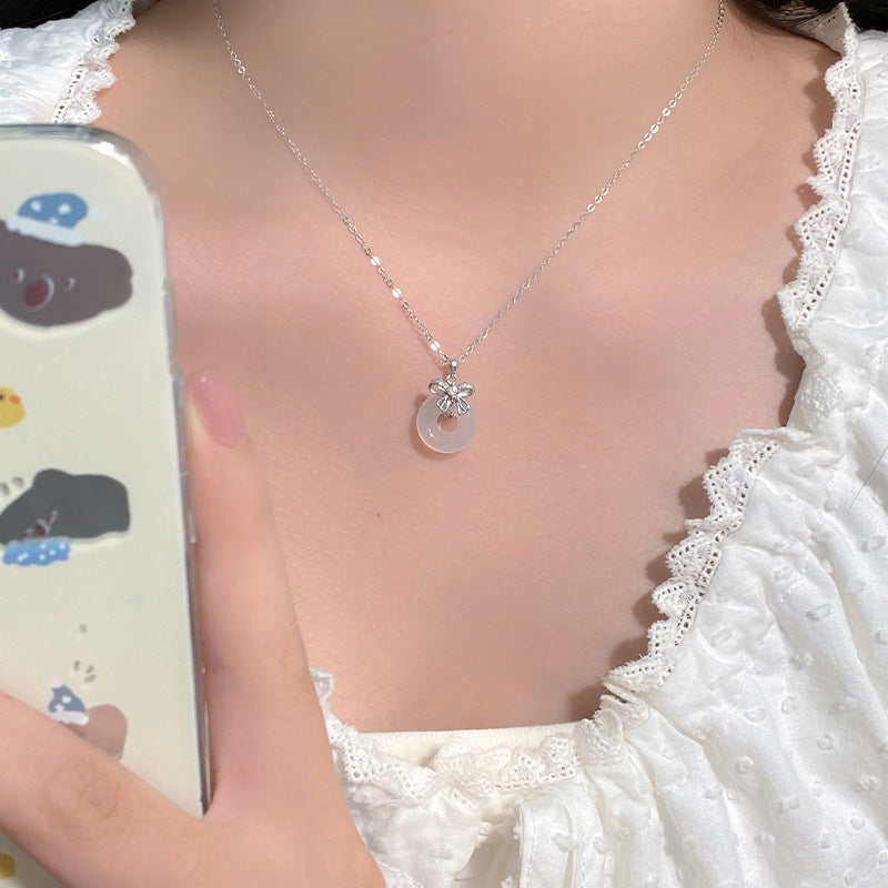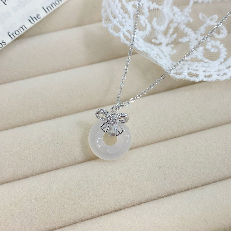 E廠【YC3947N】S999足銀蝴蝶結平安扣項鍊氣質百搭高級小眾文藝鎖骨鏈 24.08-1