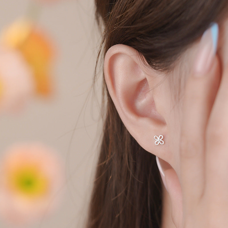 E廠【YC3948E】S999足銀四葉草螺絲耳環極簡清新文藝設計感小眾韓版耳飾 25.06-4