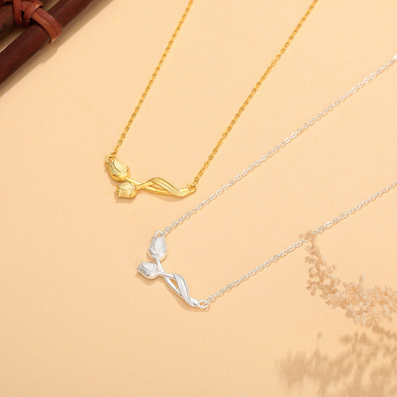 E廠【YC3961N】S925純銀鬱金香項鍊ins風氣質女孩百塔時尚設計感鎖骨鍊 24.07-1
