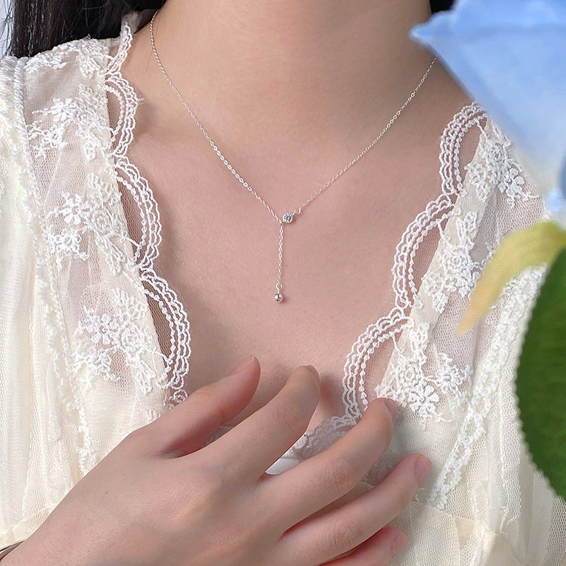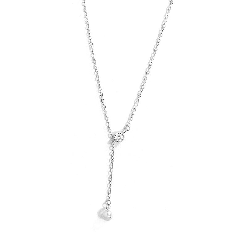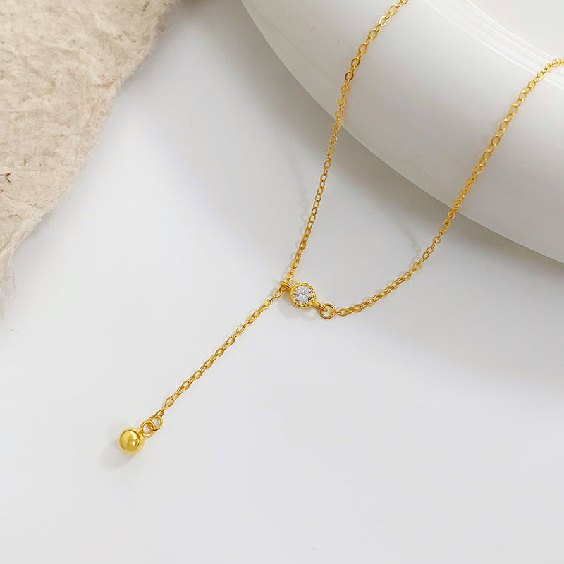 E廠【YC3983N】S925純銀簡約鋯石圓珠流蘇項鍊女冷淡風輕奢氣質鎖骨鏈 24.06-3