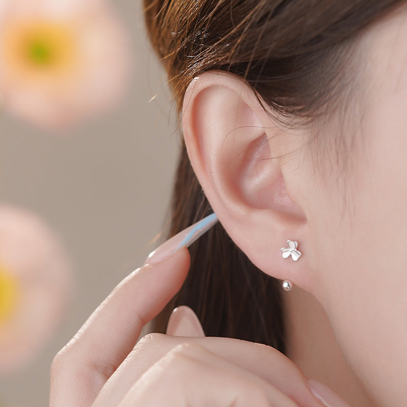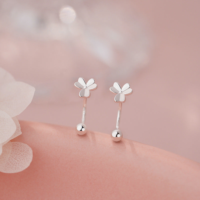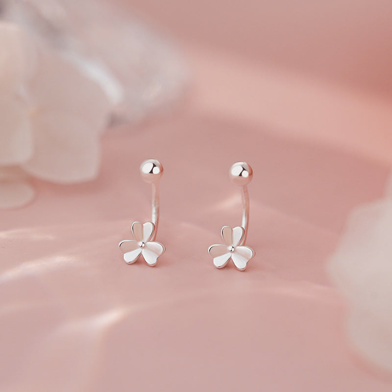 E廠【YC4001E】S999足銀小巧三葉草U型螺絲耳環女養洞耳高級感防丟耳飾 25.07-1