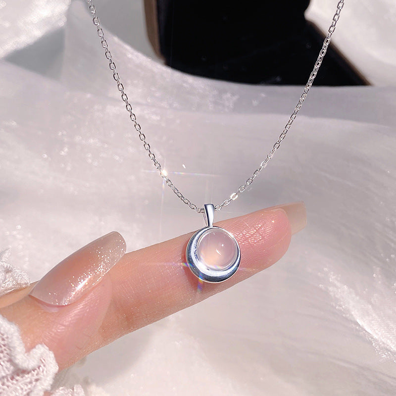 E廠【YC4016N】S925純銀白玉髓項鍊簡約小眾甜美氣質設計感小清新鎖骨鏈 24.09-4
