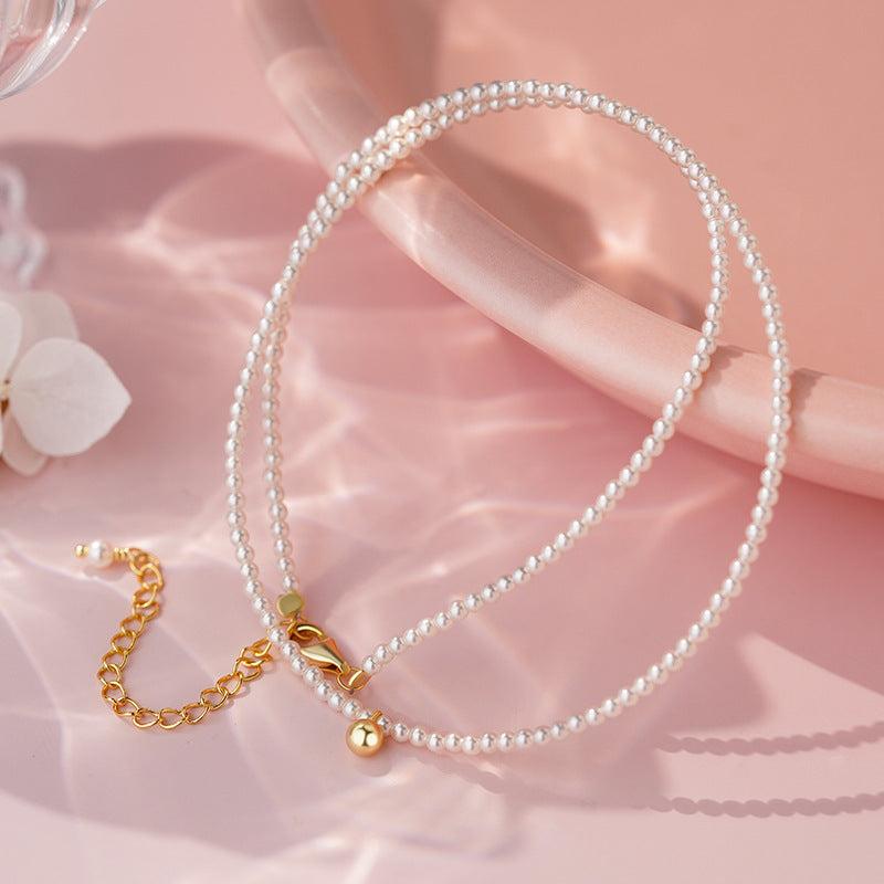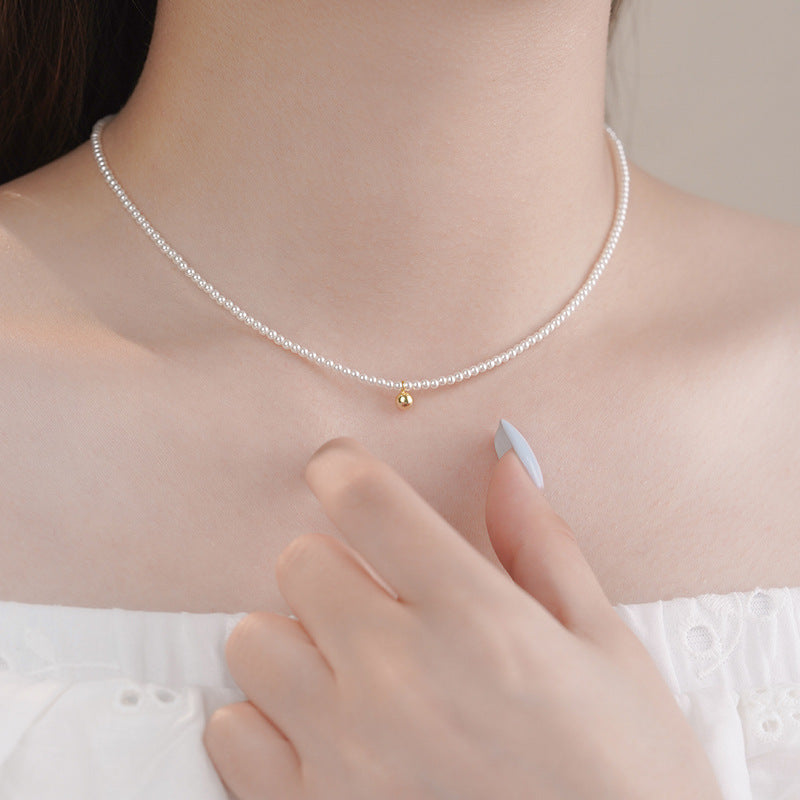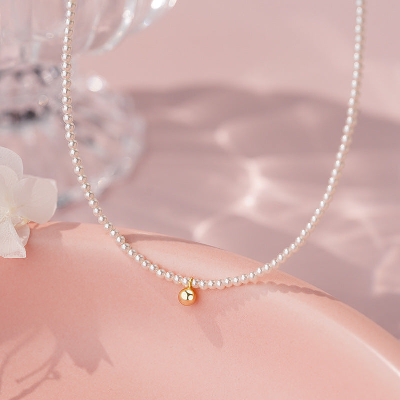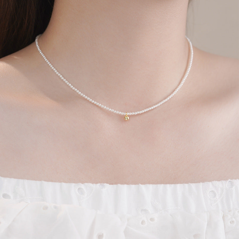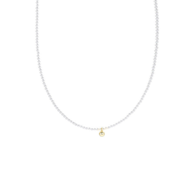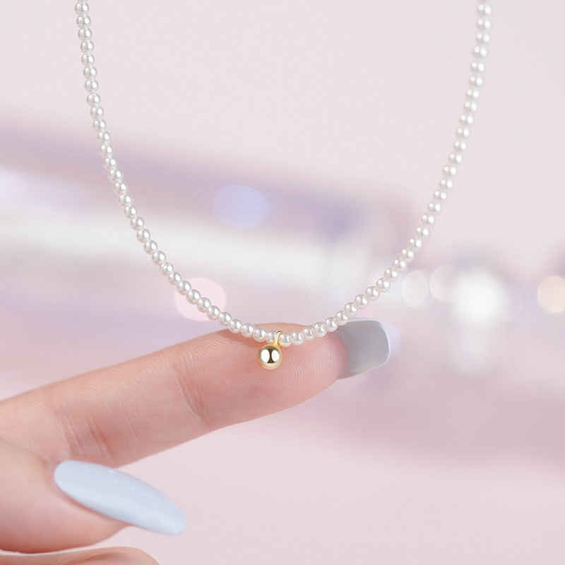 E廠【YC4062N】S999足銀圓珠珍珠項鍊輕奢法式復古設計溫柔精美鎖骨鏈 25.10-1