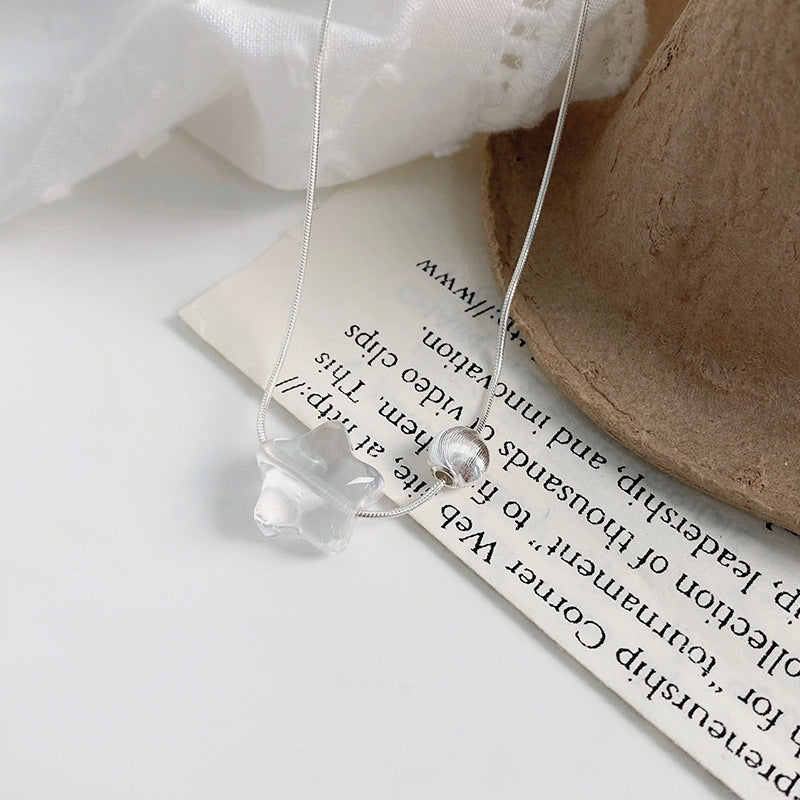 E廠【YC4075N】S925純銀白水晶星星項鍊清新甜美獨特設計氣質百搭鎖骨鏈 24.08-4